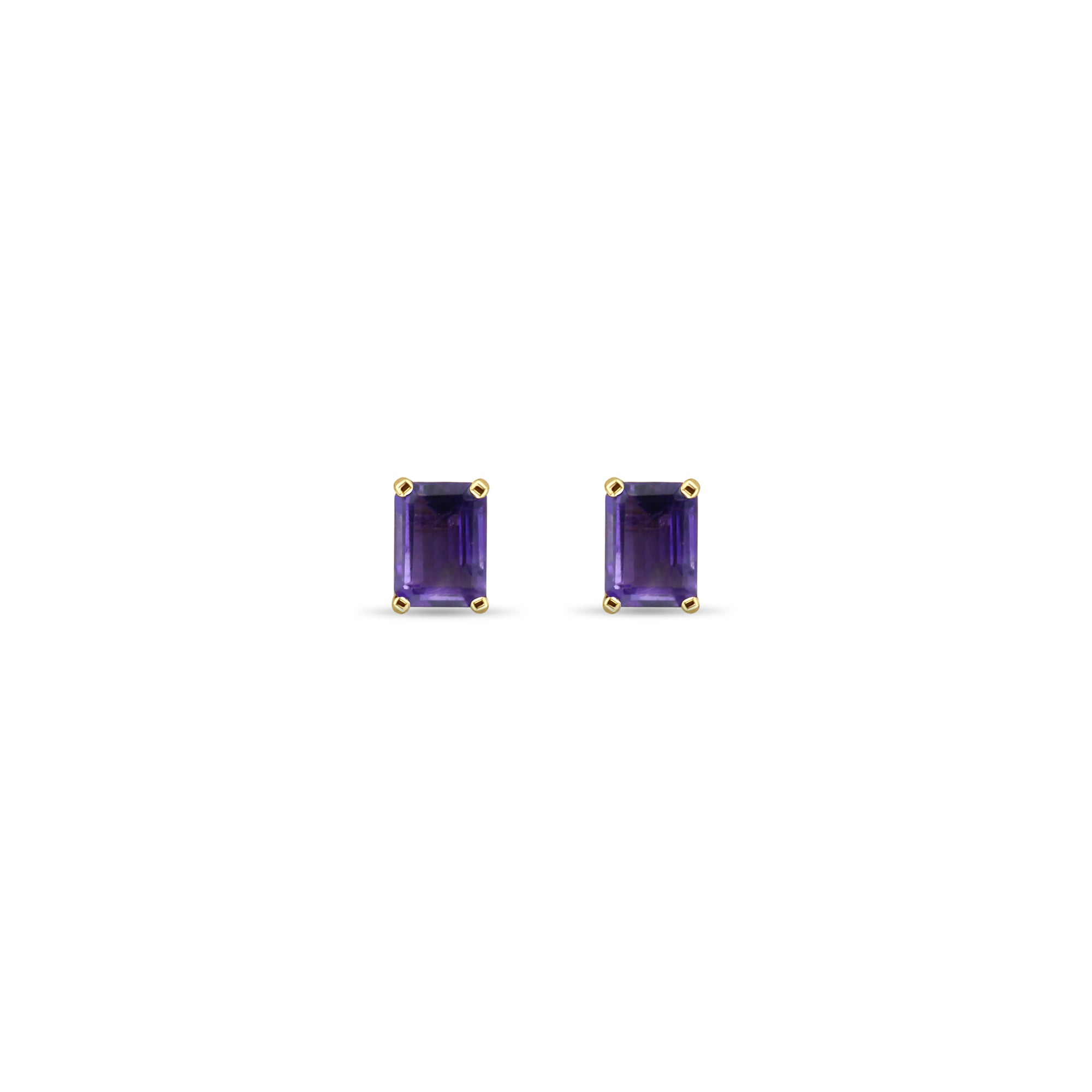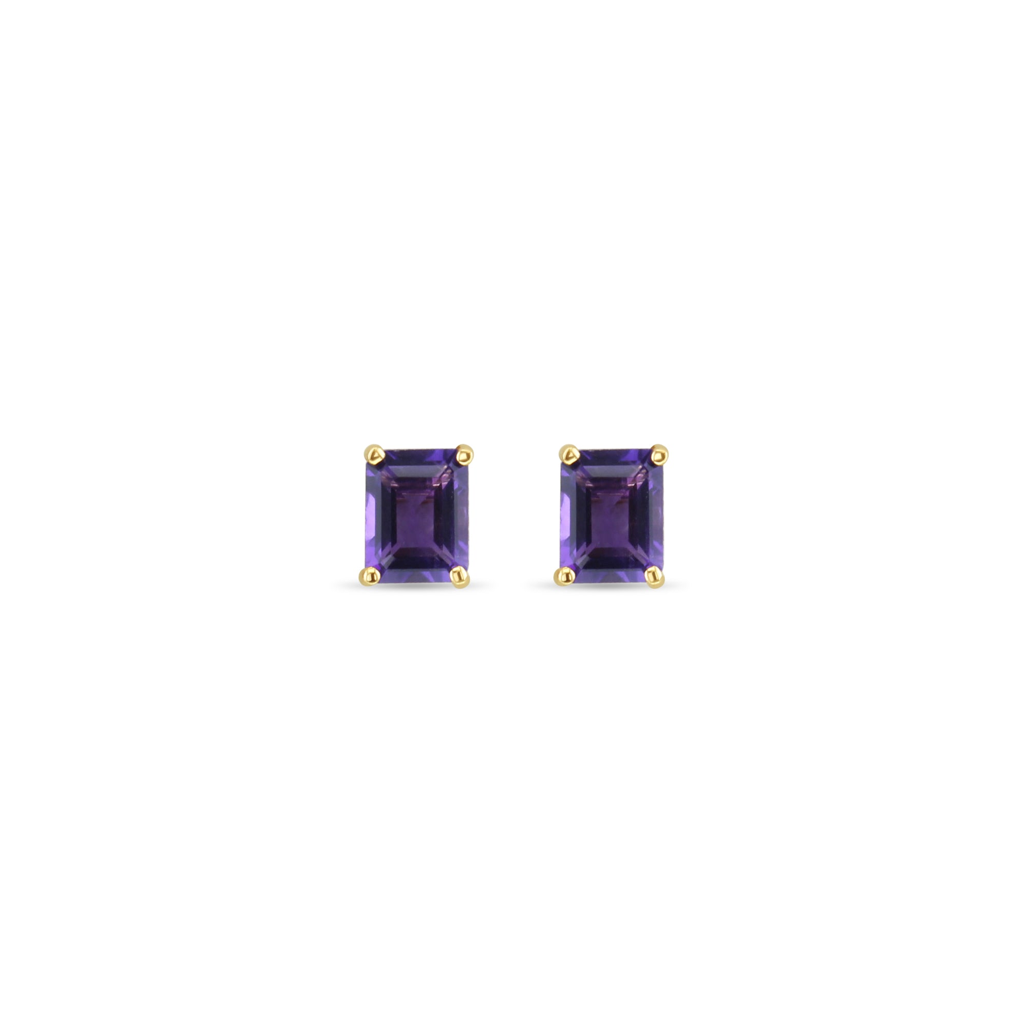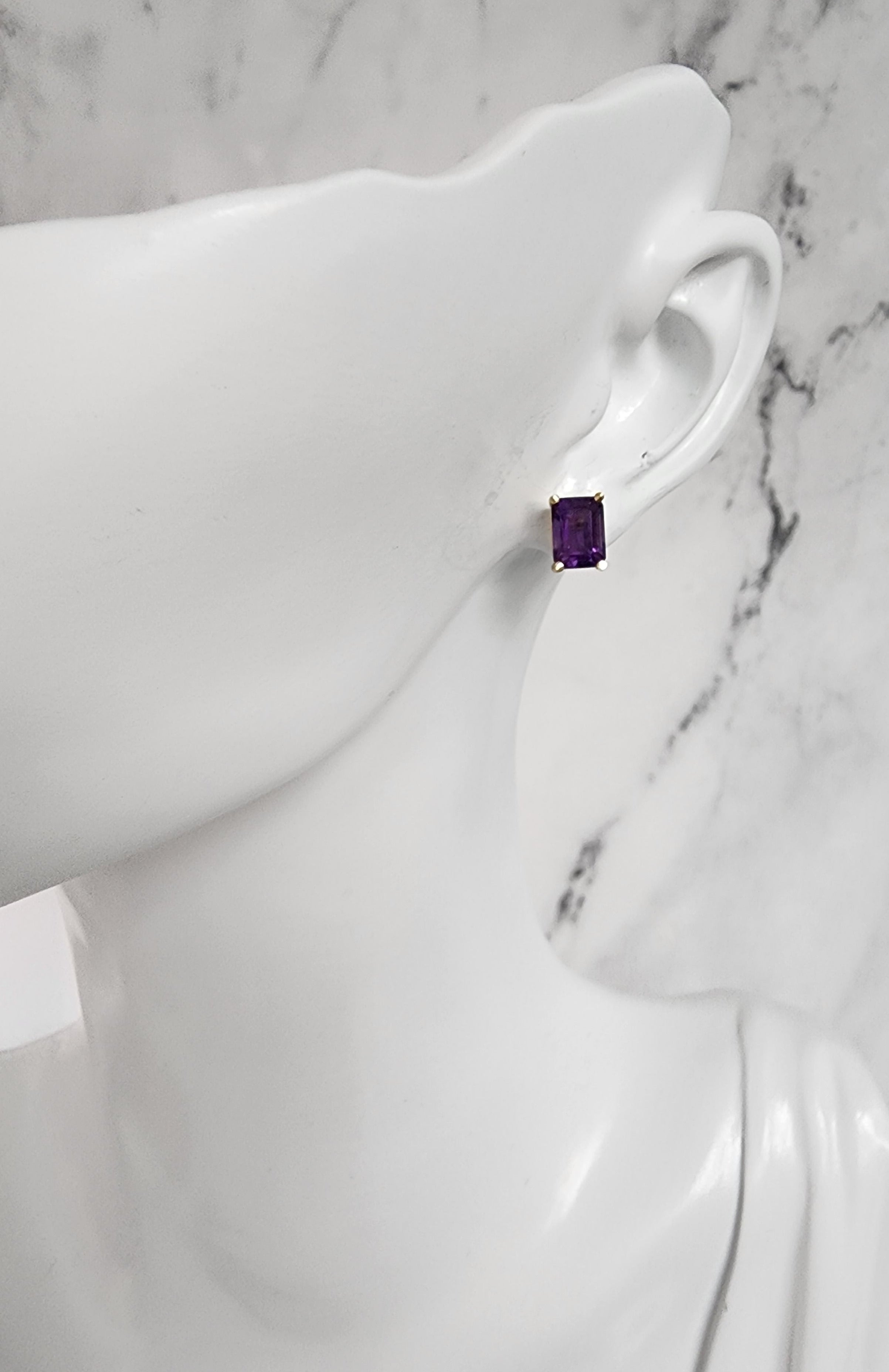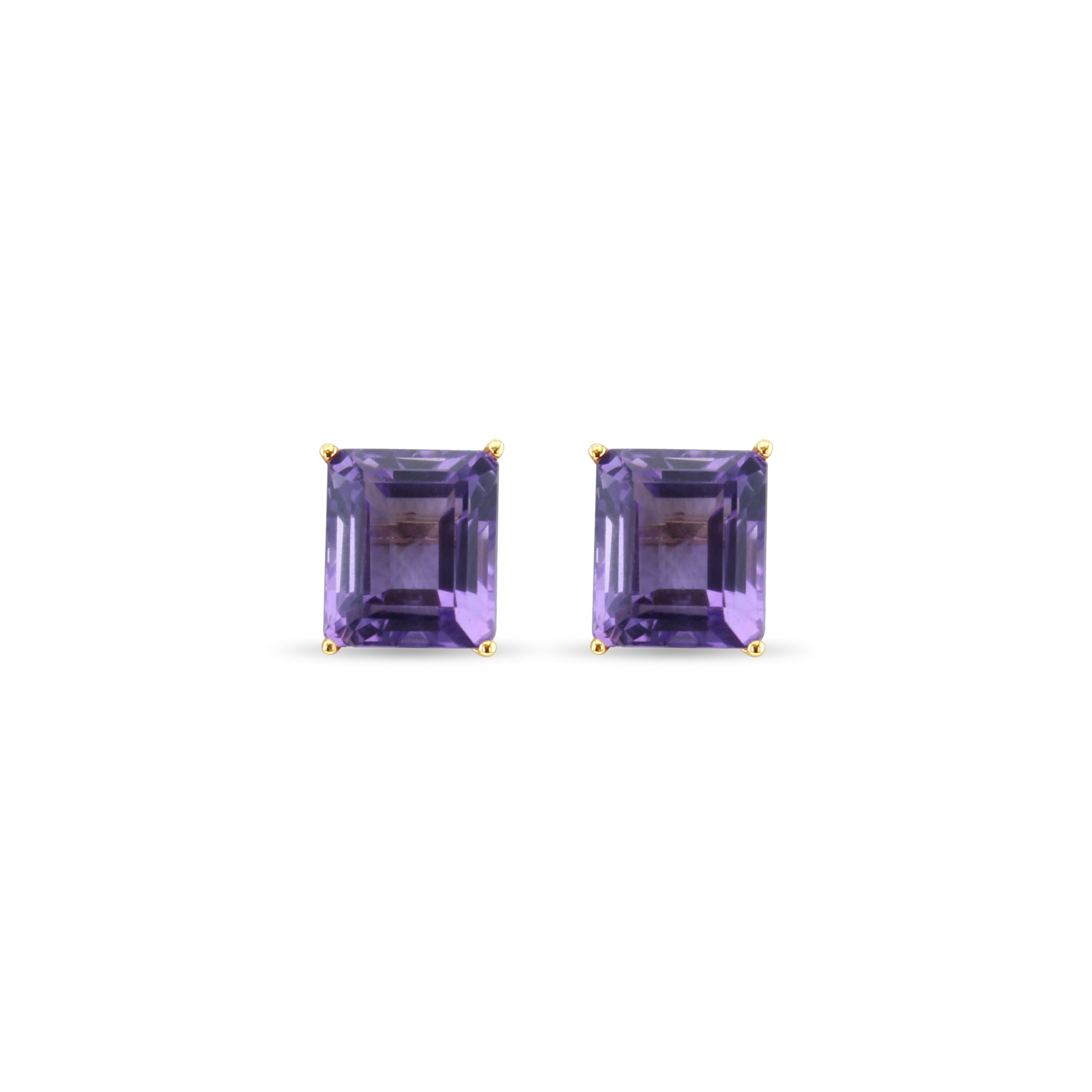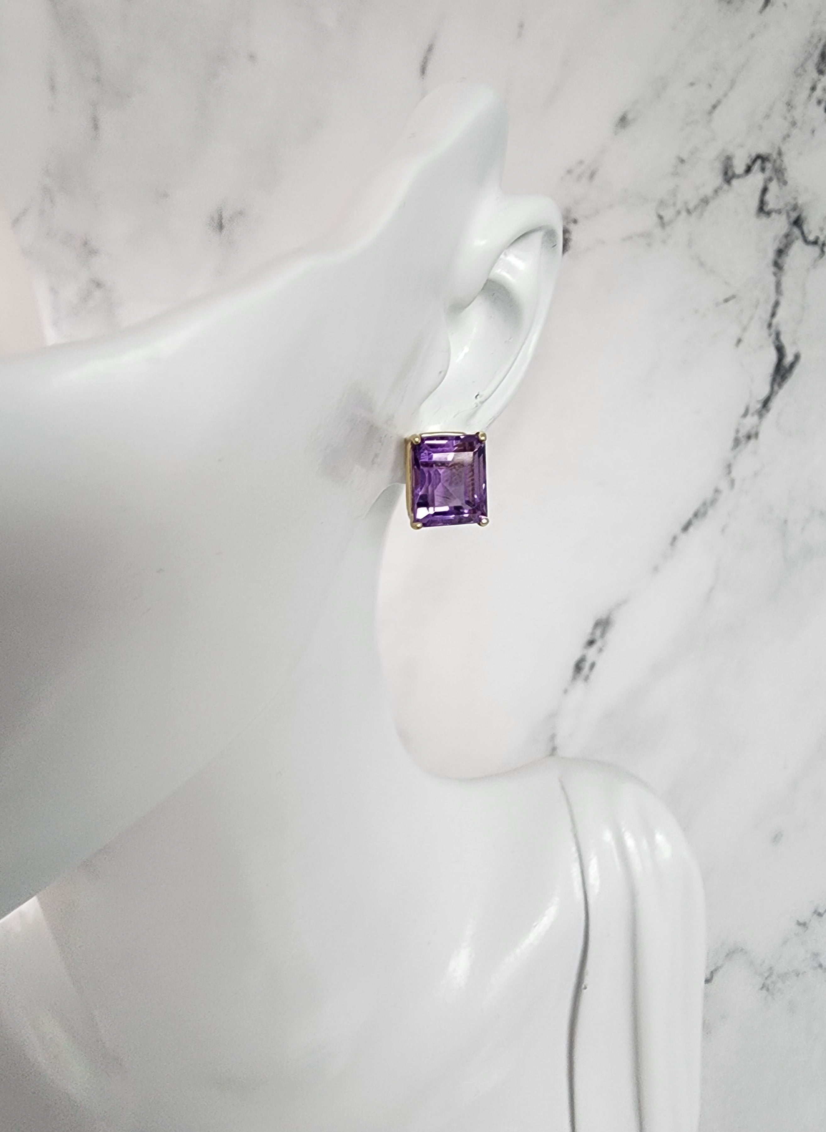 Emerald Cut Amethyst Studs 14k Yellow Gold
