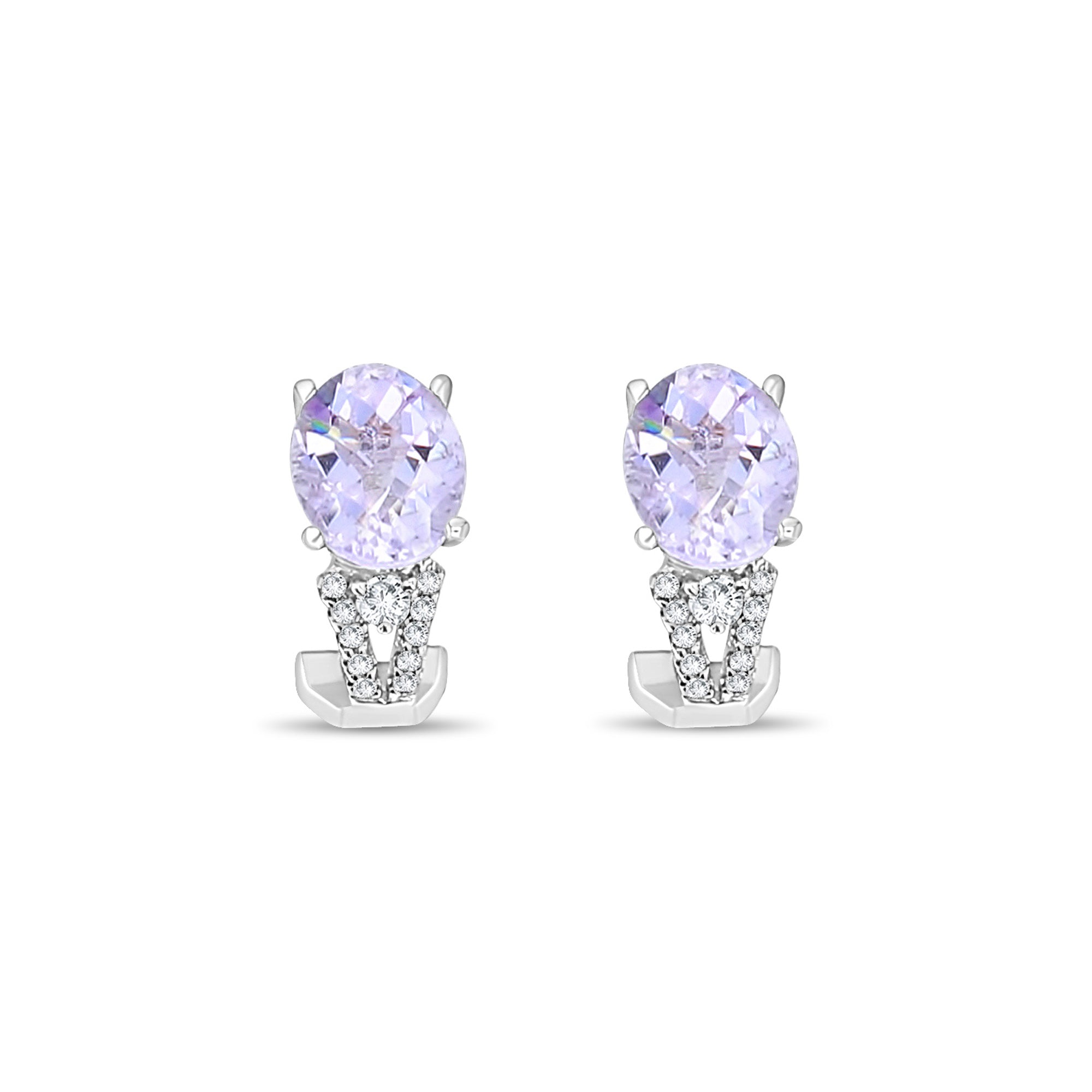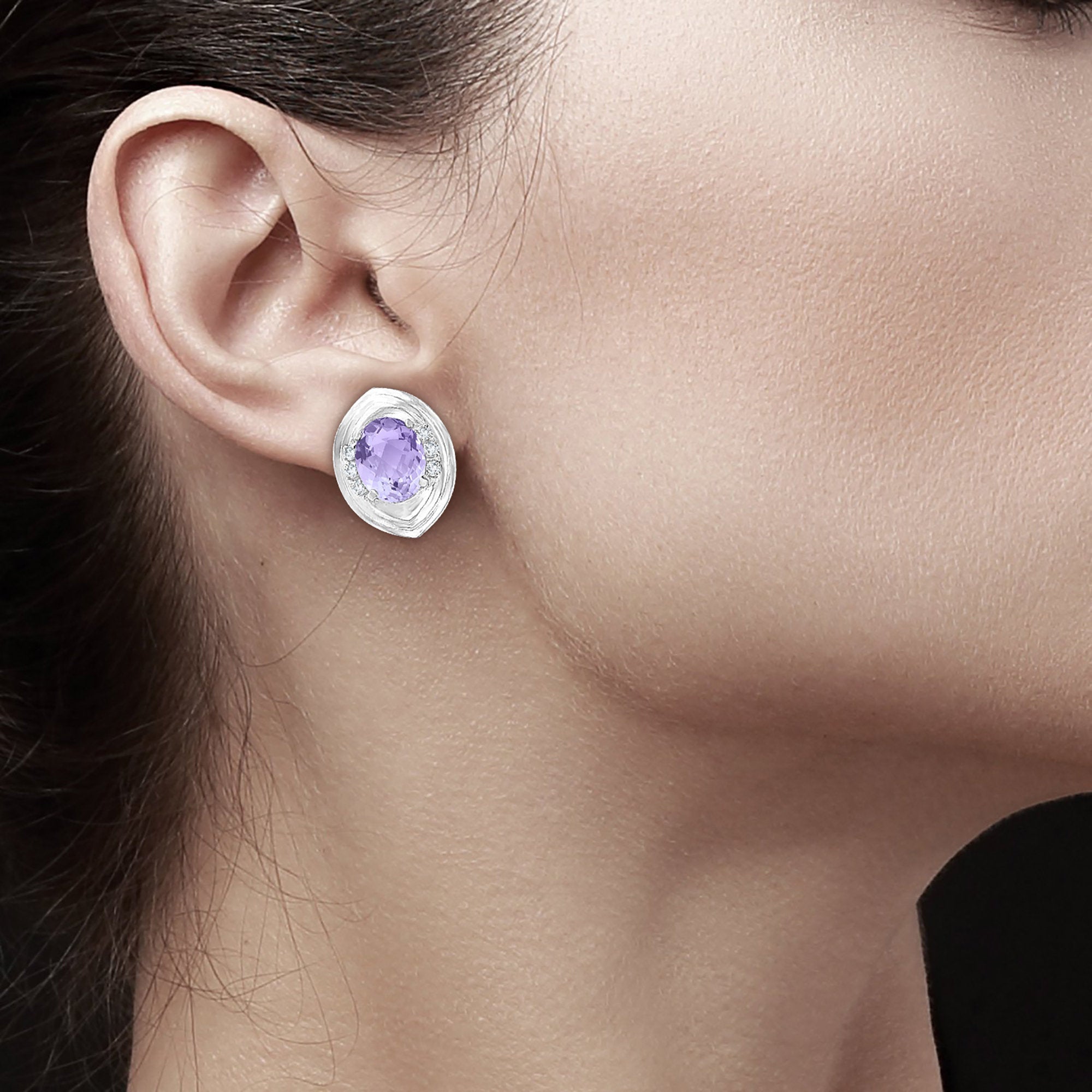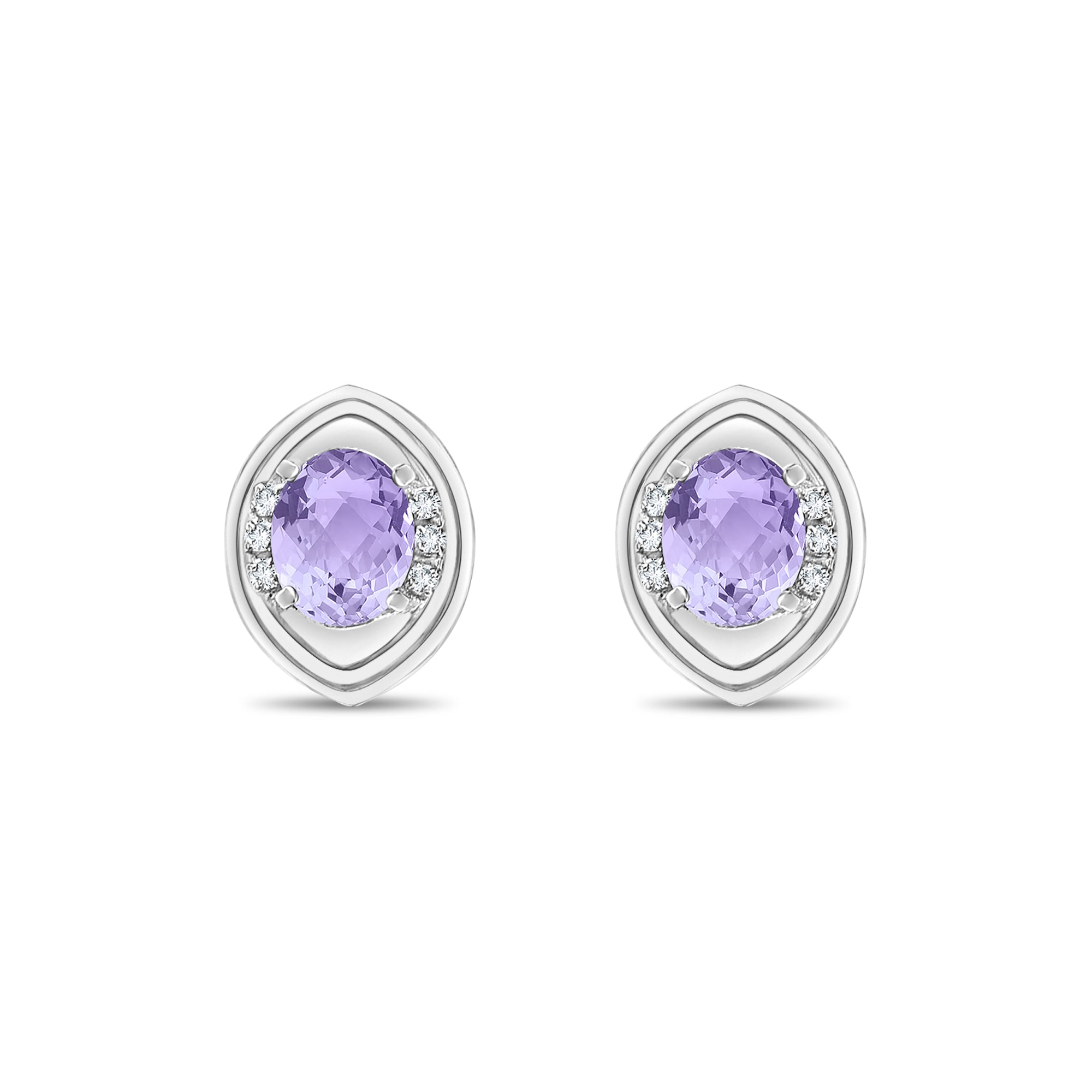 Oval Amethyst Diamond Earrings .43cttw 14k White Gold