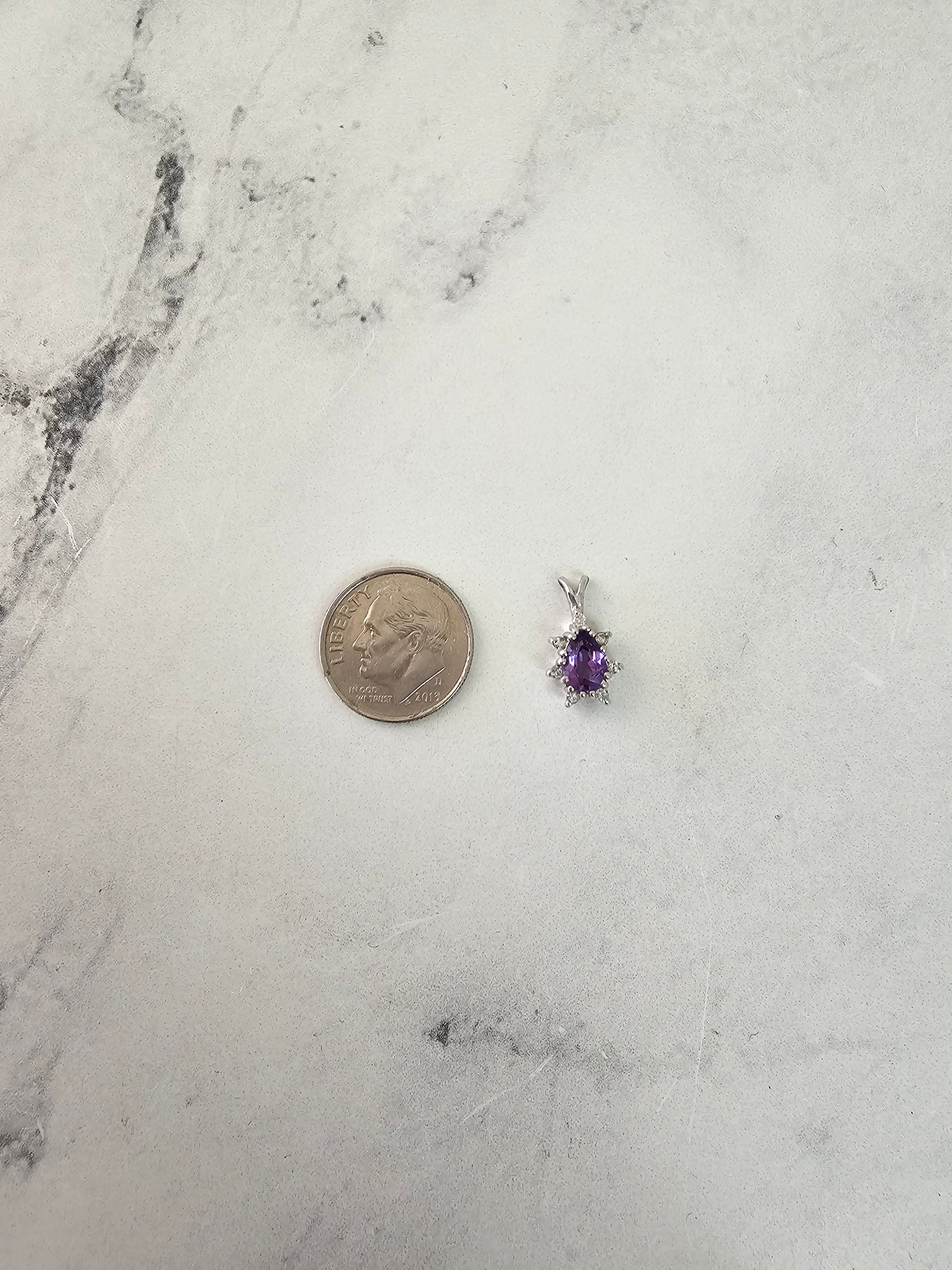 Pear Shaped Amethyst Diamond Necklace 14k White Gold