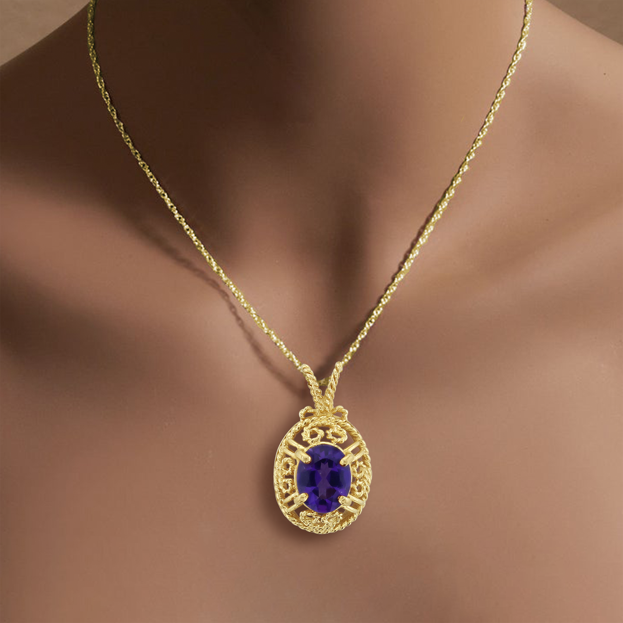 Oval Amethyst Pendant 3.00cttw 14k Yellow Gold