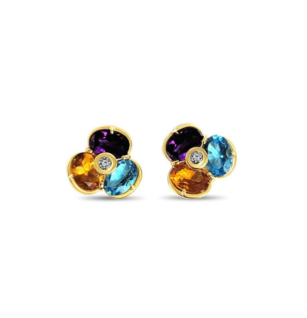 Multi-Stone Blue Topaz, Citrine, Amethyst Earrings