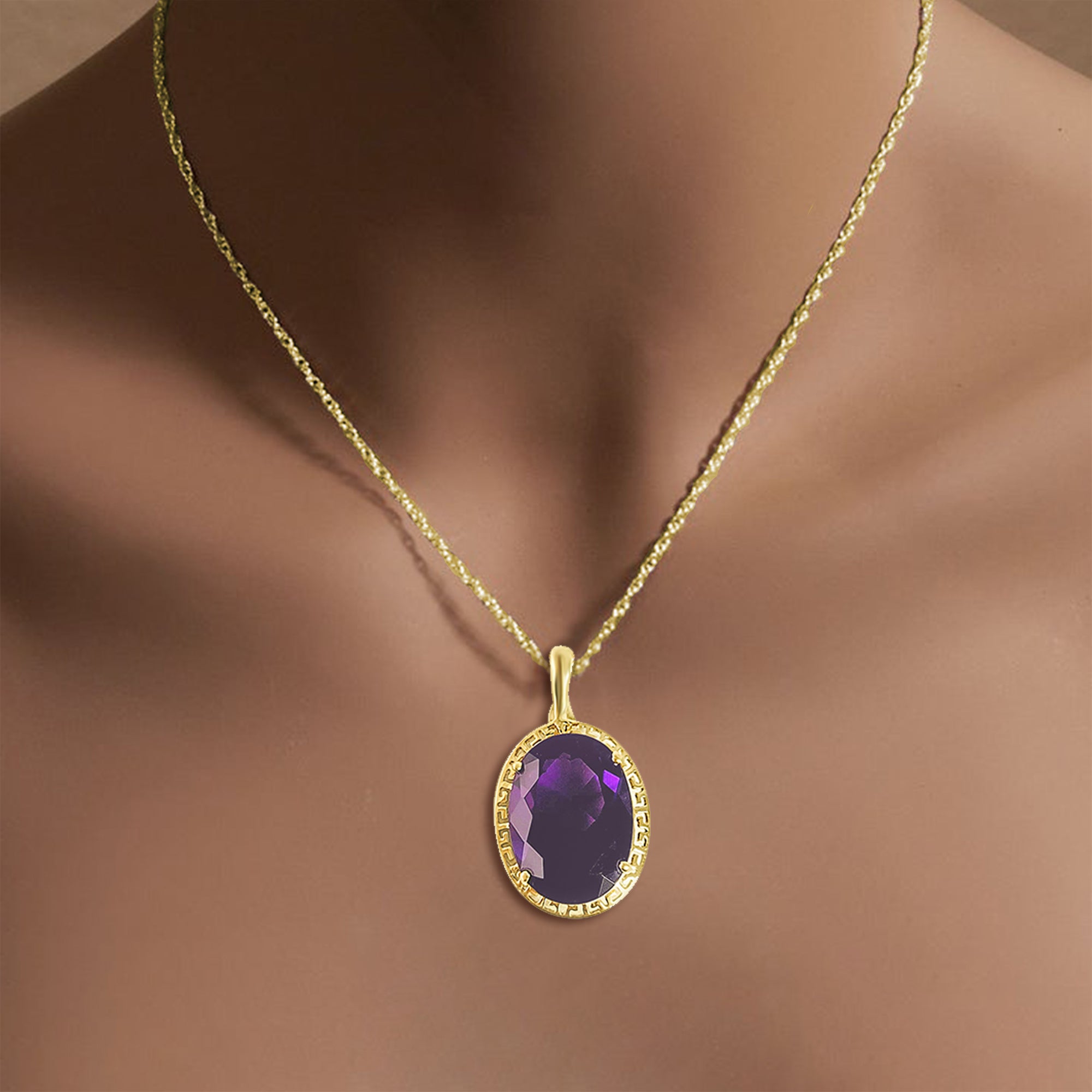 8 Carat Amethyst Necklace 14k Yellow Gold
