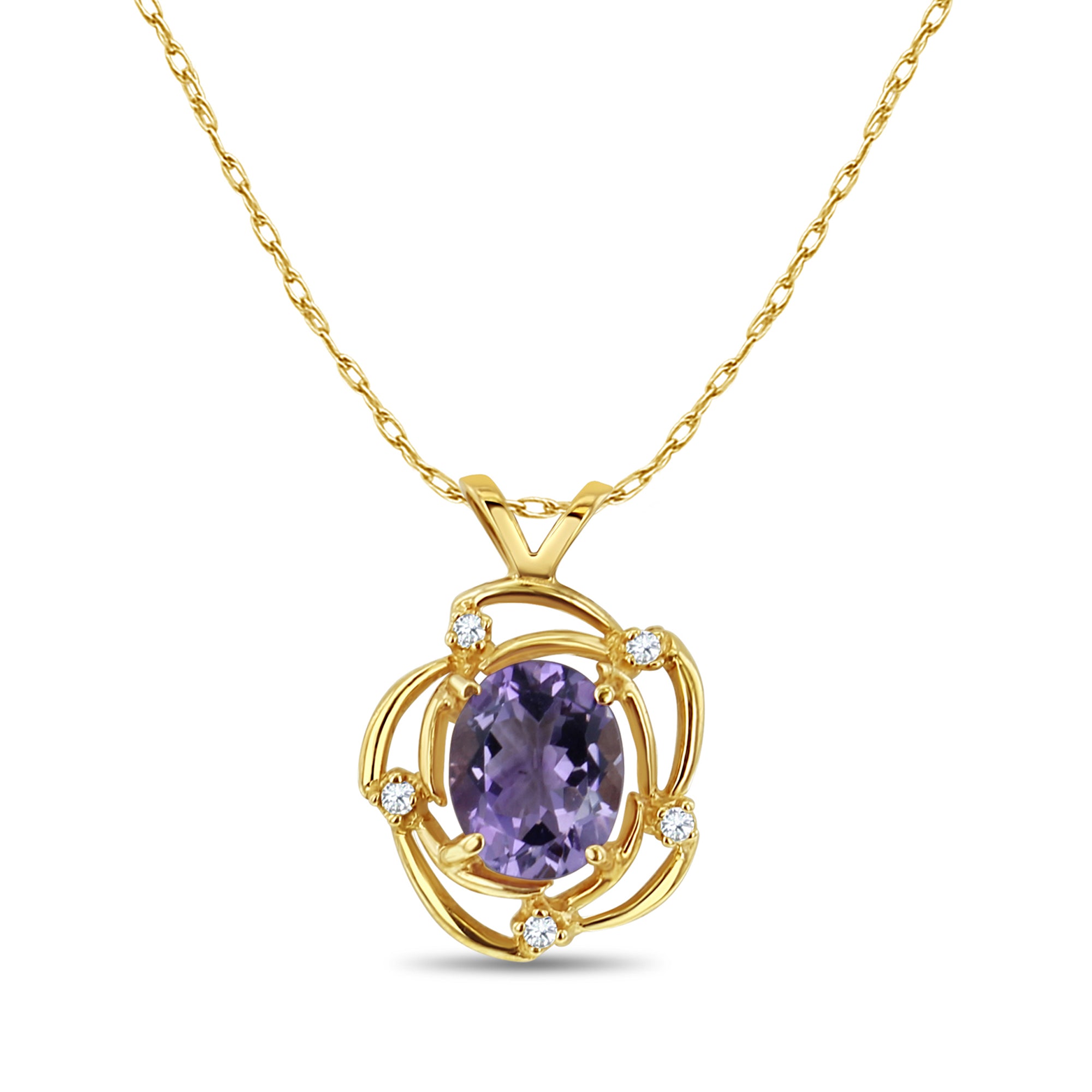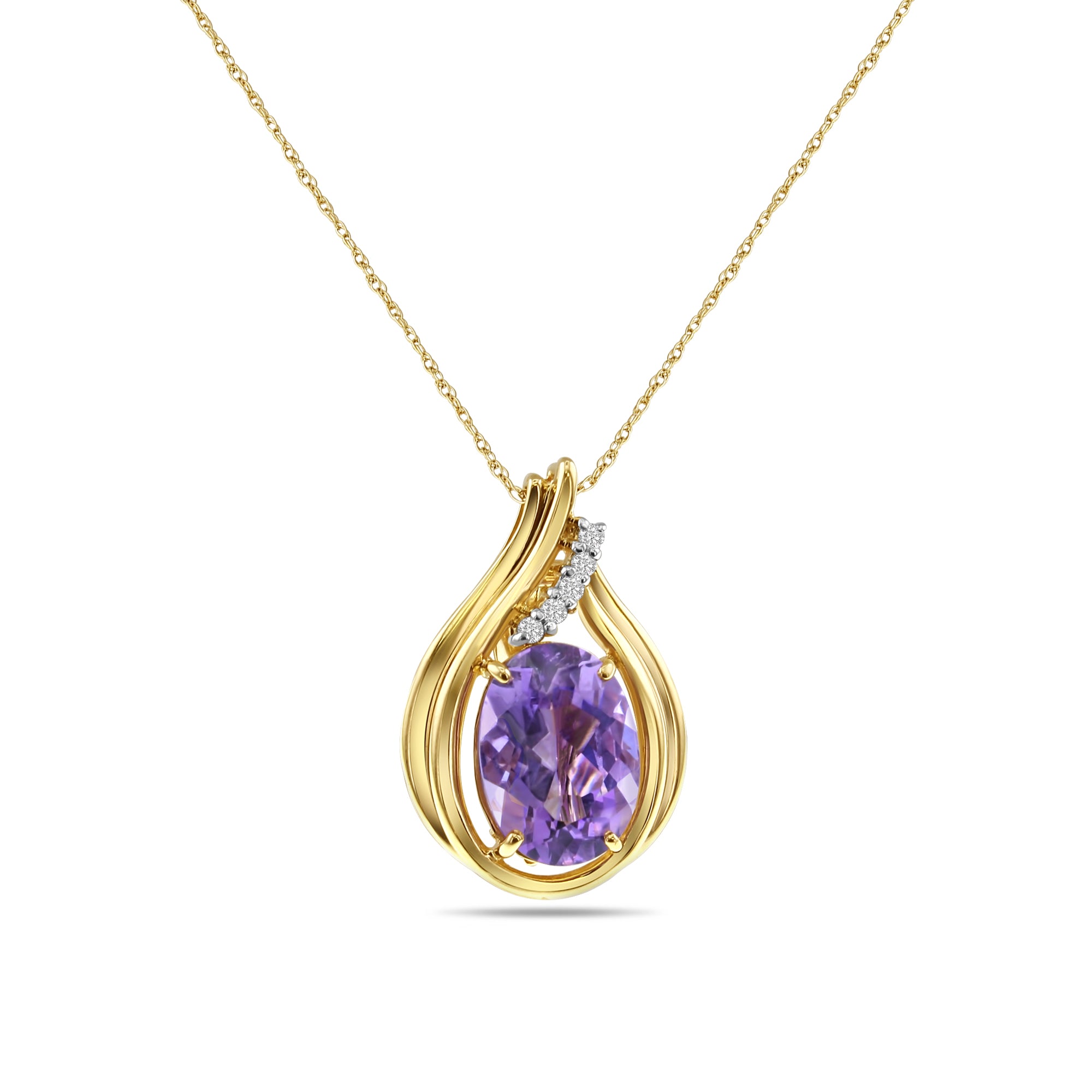 Teardrop Oval Amethyst Necklace with Diamond Accents 14k Yellow Gold