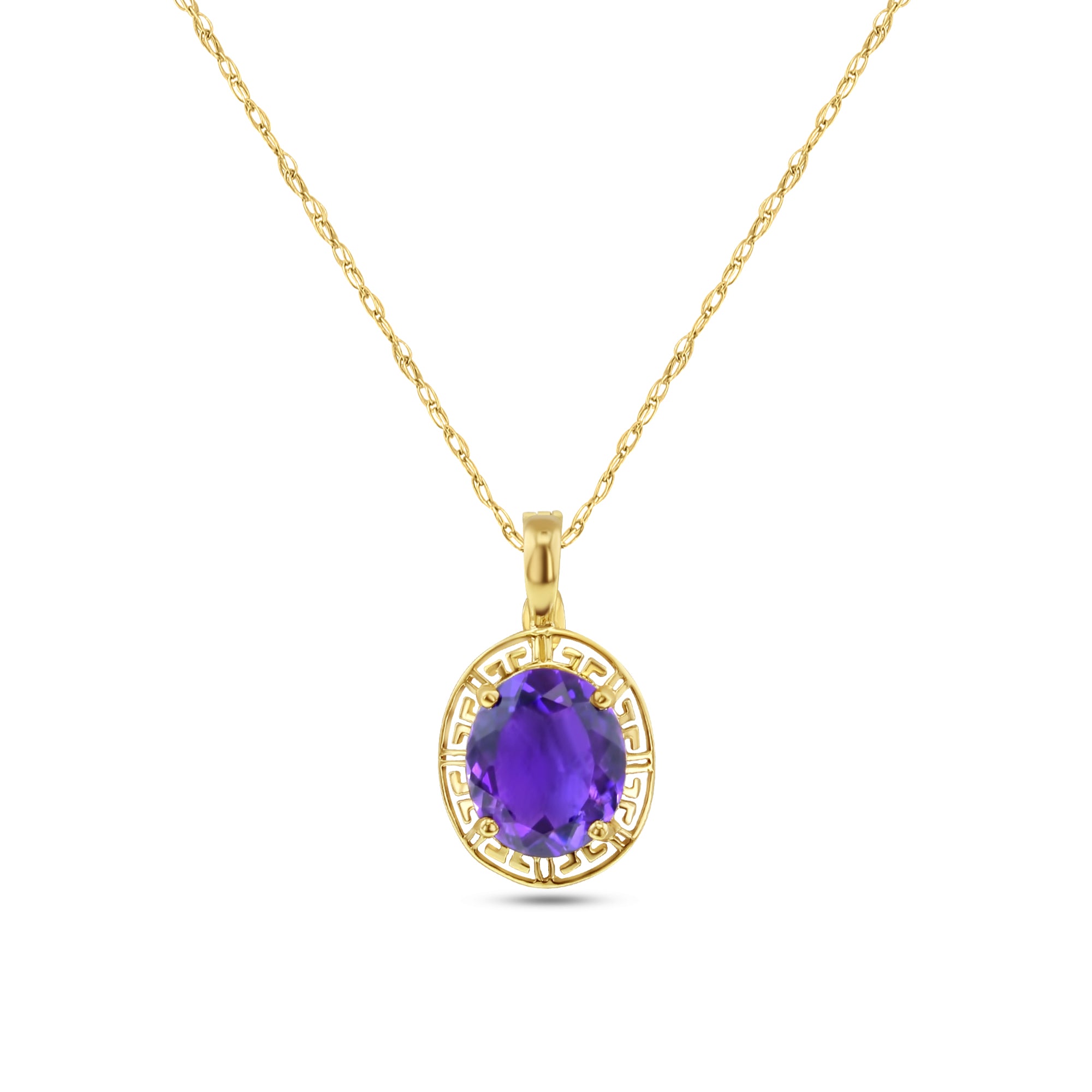 12MM Oval Amethyst Necklace with Greek Key Bezel