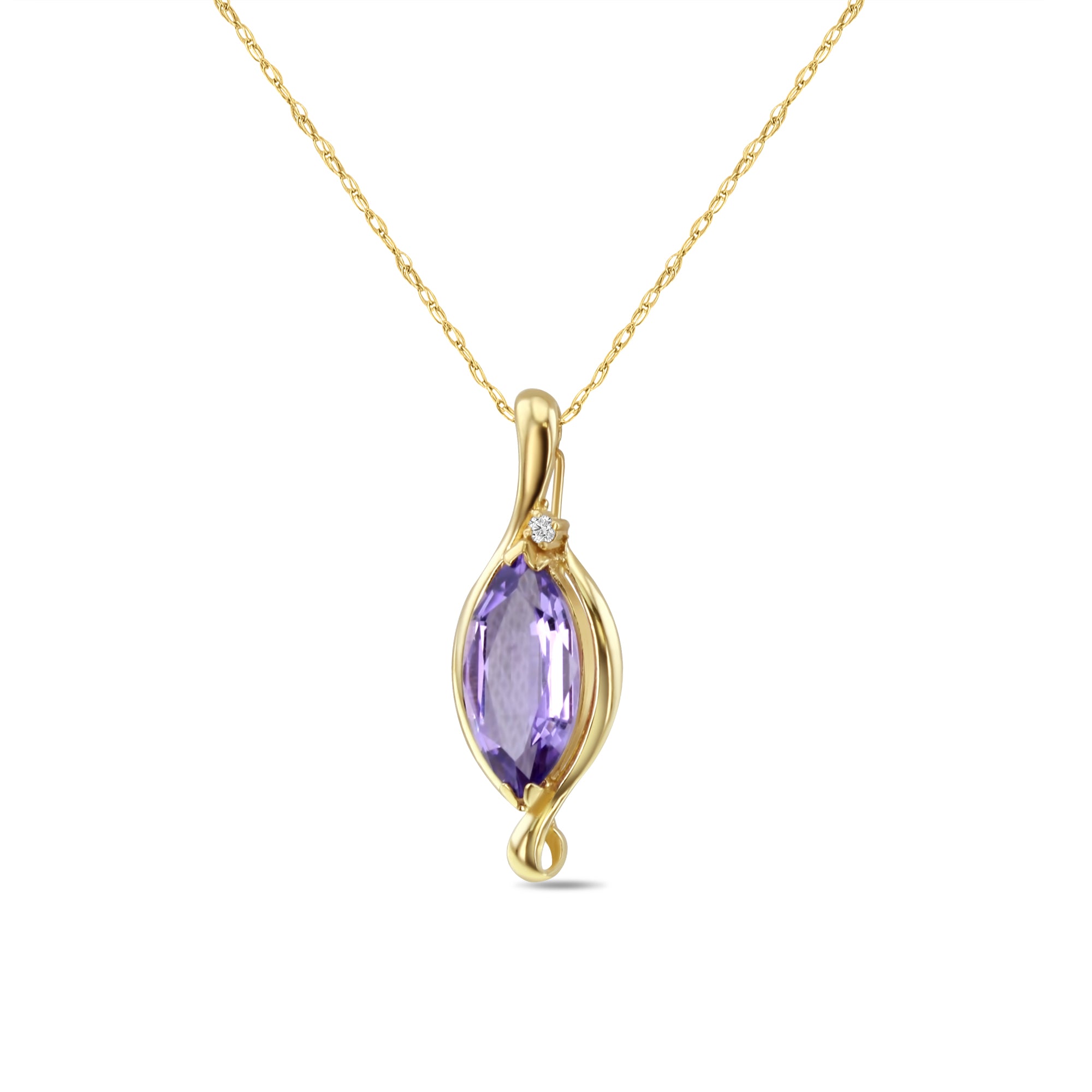 Marquise Amethyst & Diamond Necklace 14k Yellow Gold