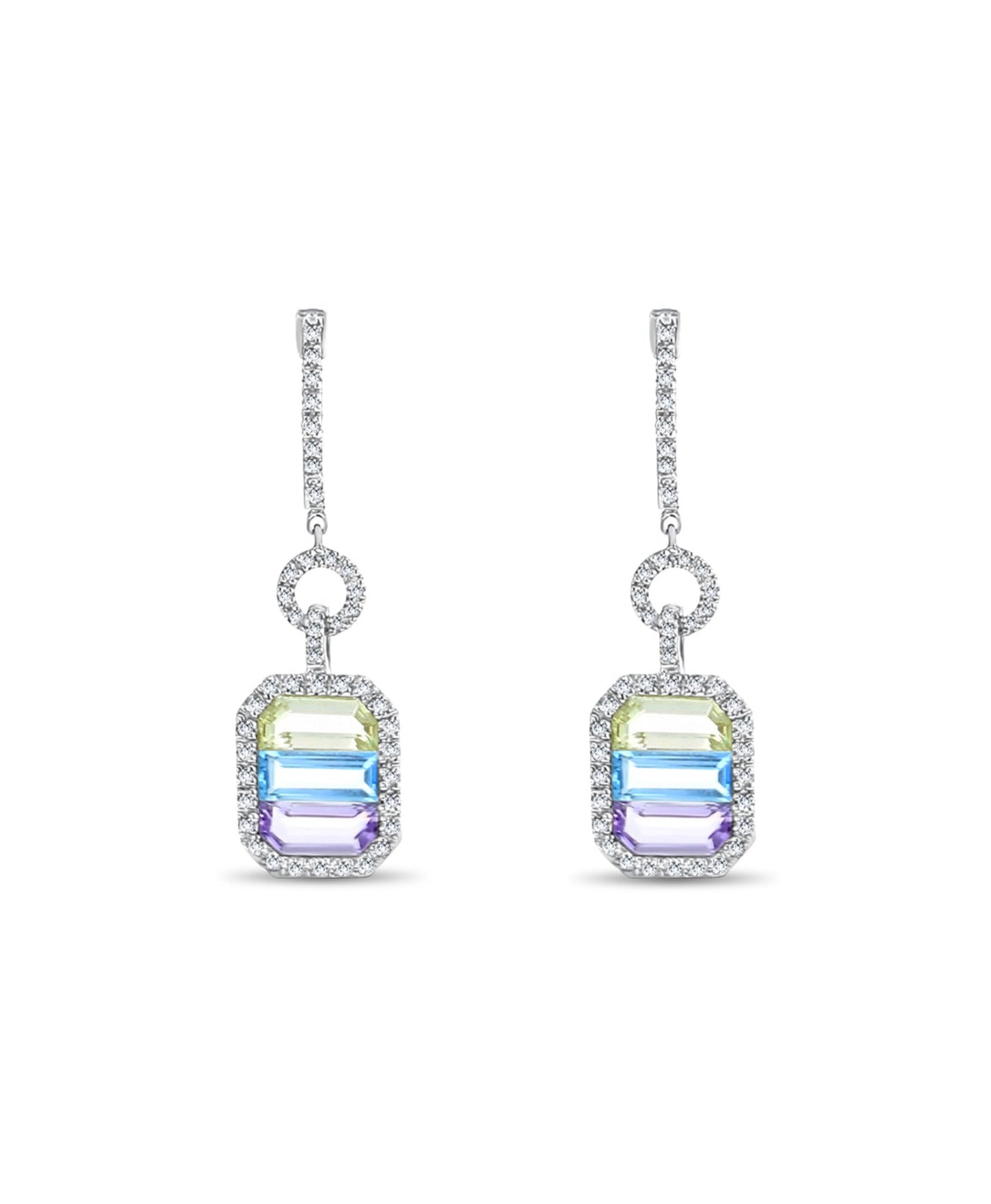 Lavender Quartz, Pink Amethyst & Blue Topaz Diamond Drop Earrings