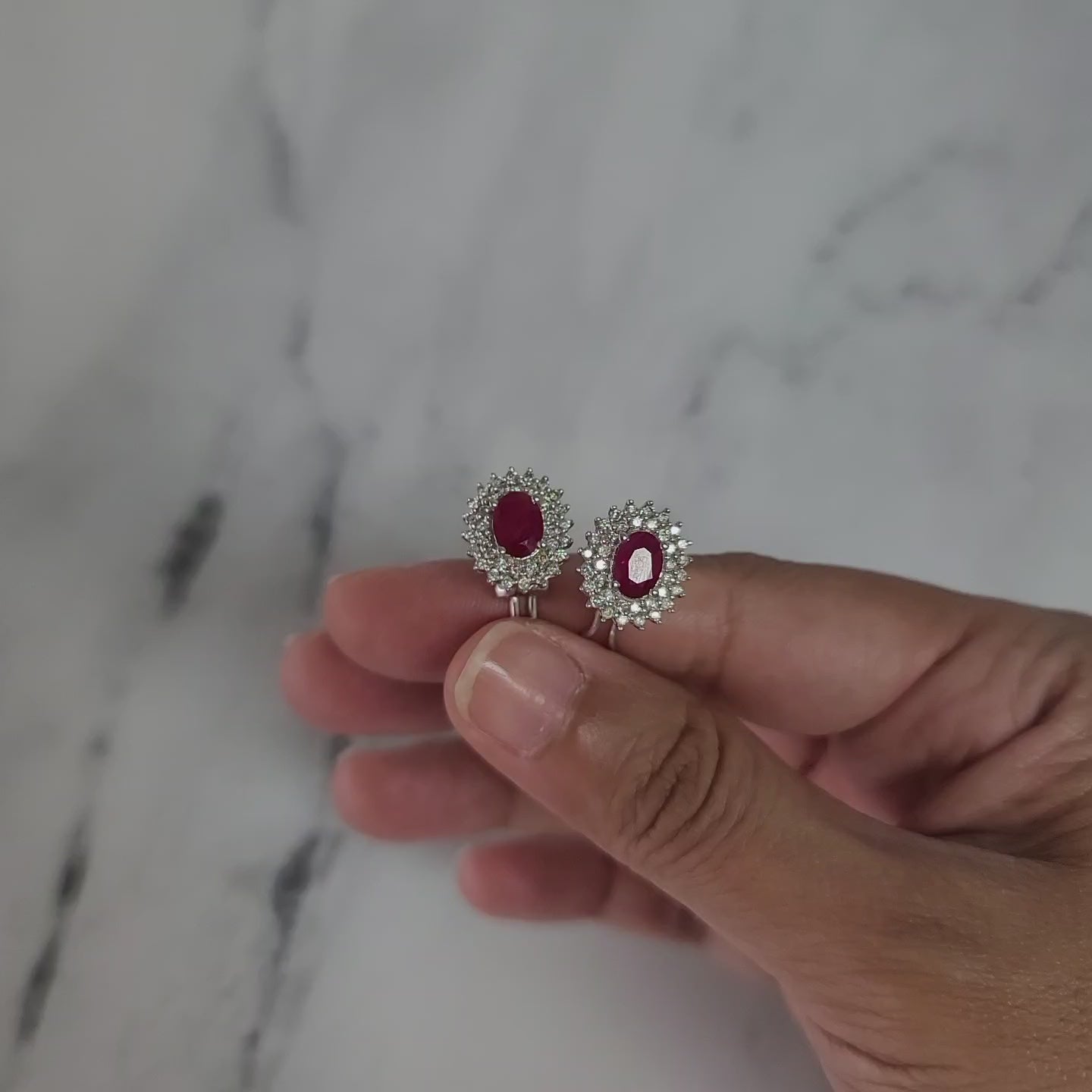Diamond Halo Ruby Earring 2.56cttw 14k White Gold