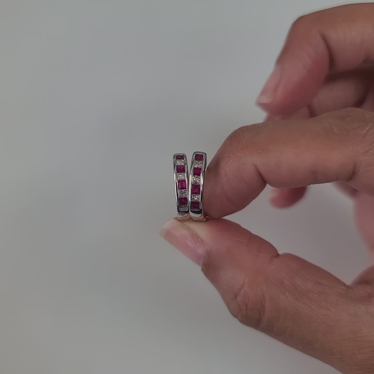 Ruby Diamond Earrings .78cttw 14k White Gold
