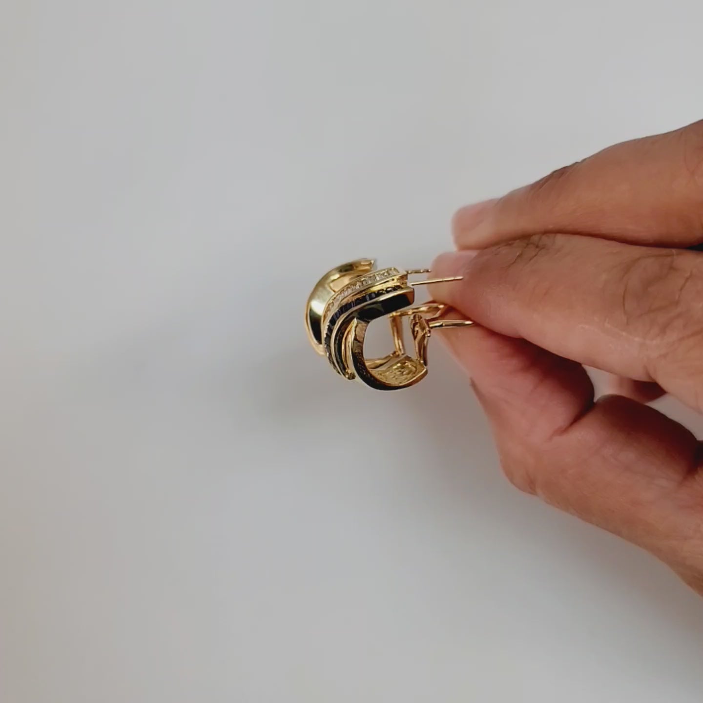 Sapphire Baguette Diamond Earrings 1.84cttw 14k Yellow Gold