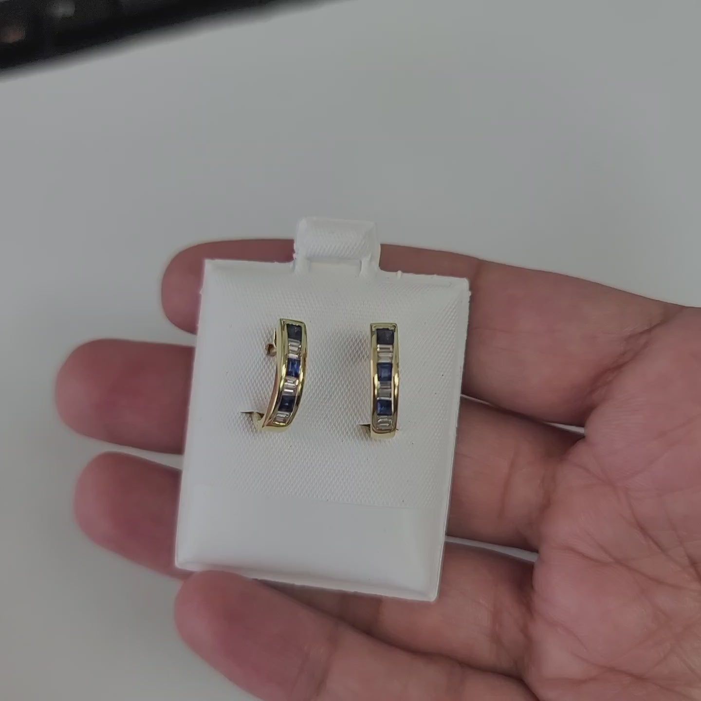 Sapphire & Diamond Baguette Earrings .80cttw 14k Yellow Gold