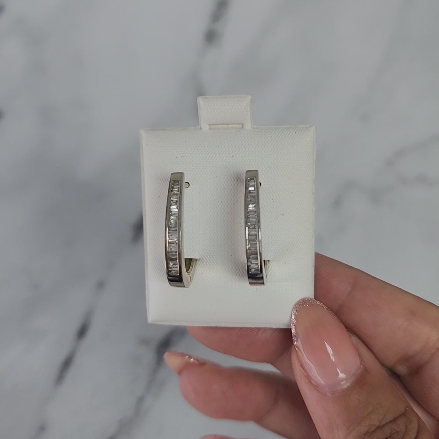 Baguette Diamond Hoop Earrings .80cttw 14k White Gold
