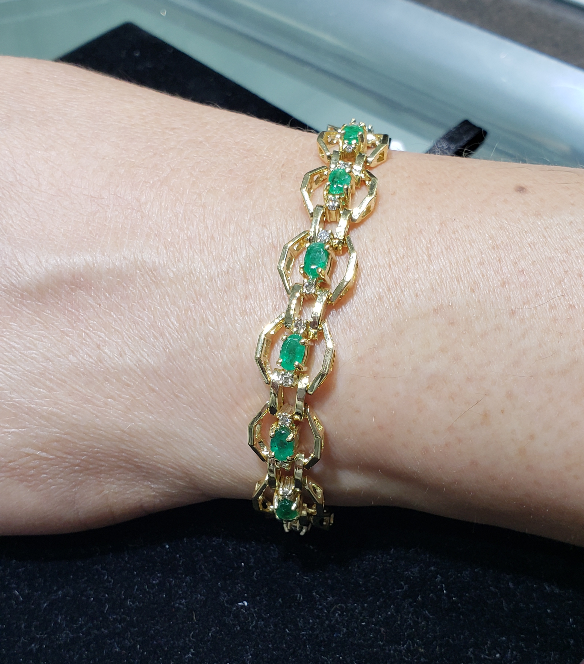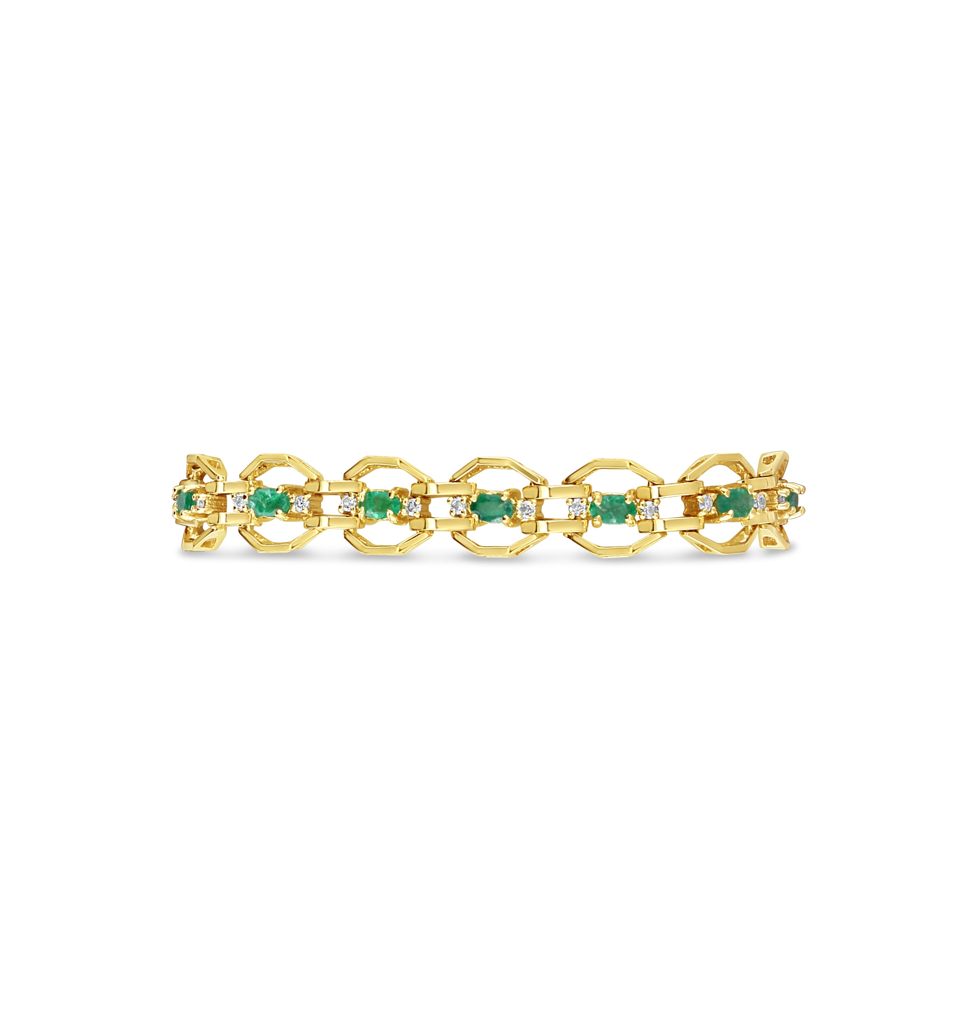 Emerald & Diamond Tennis Bracelet 4.25cttw 14k Yellow Gold