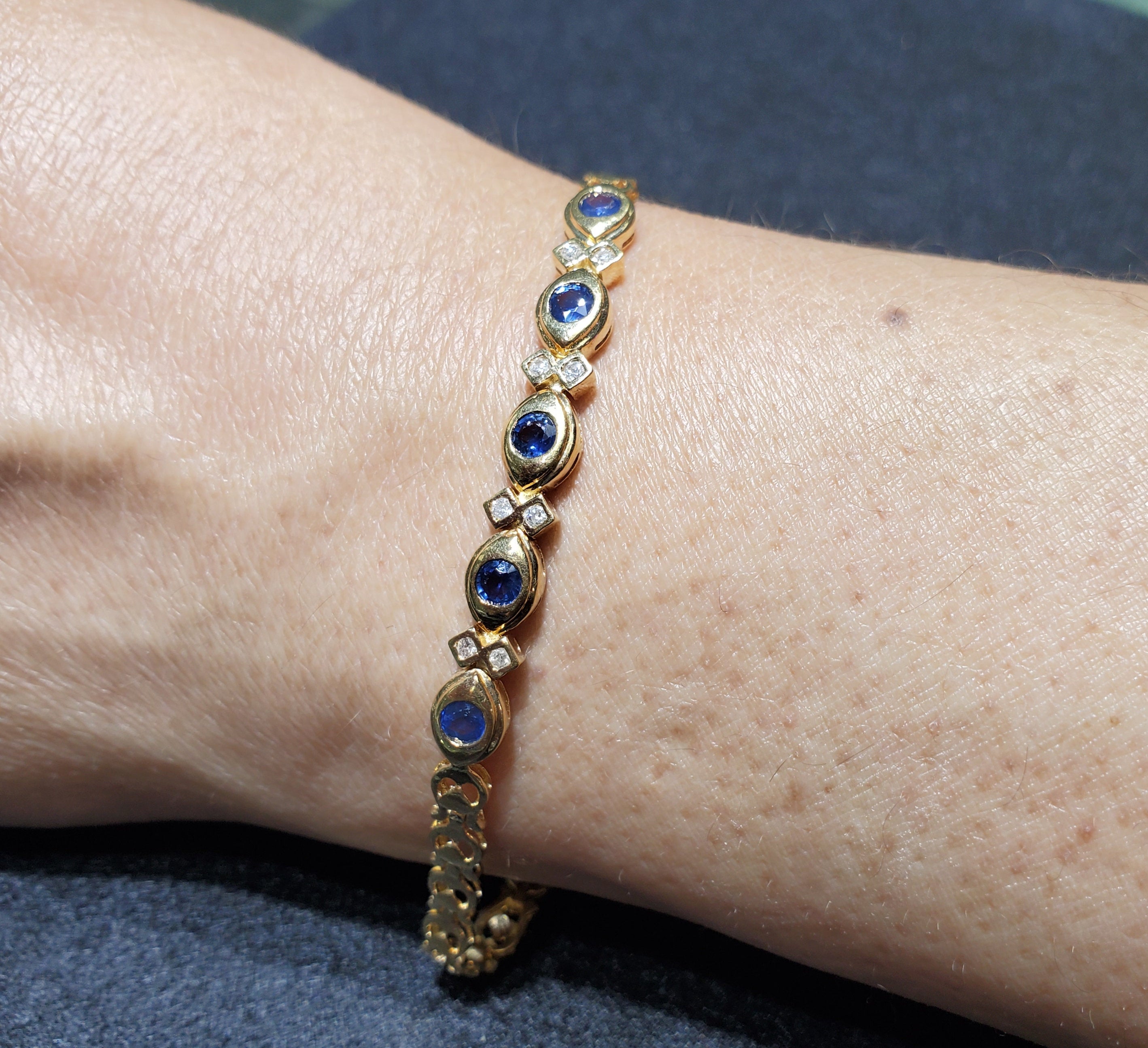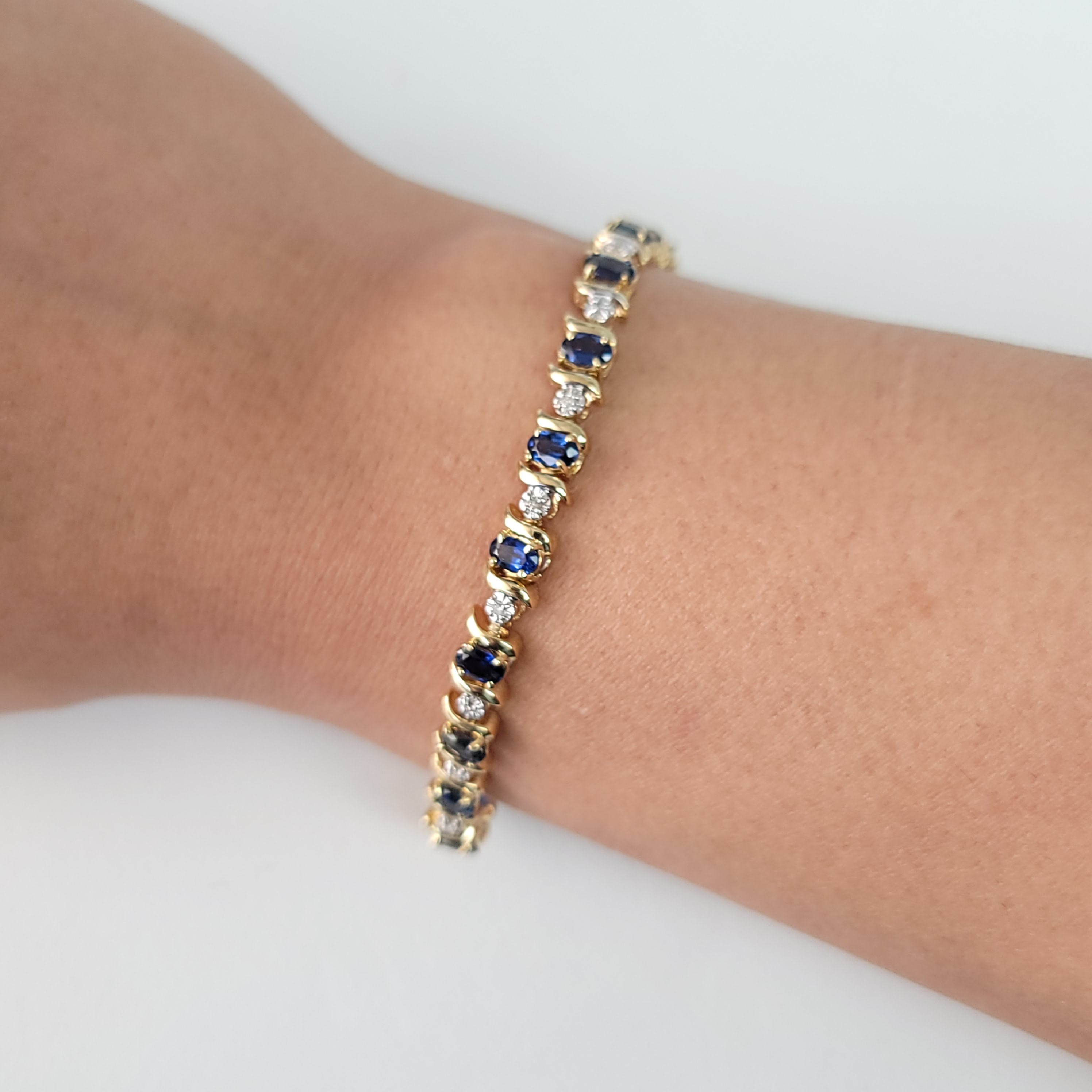 Oval Sapphire & Diamond Tennis Bracelet 14k Yellow Gold