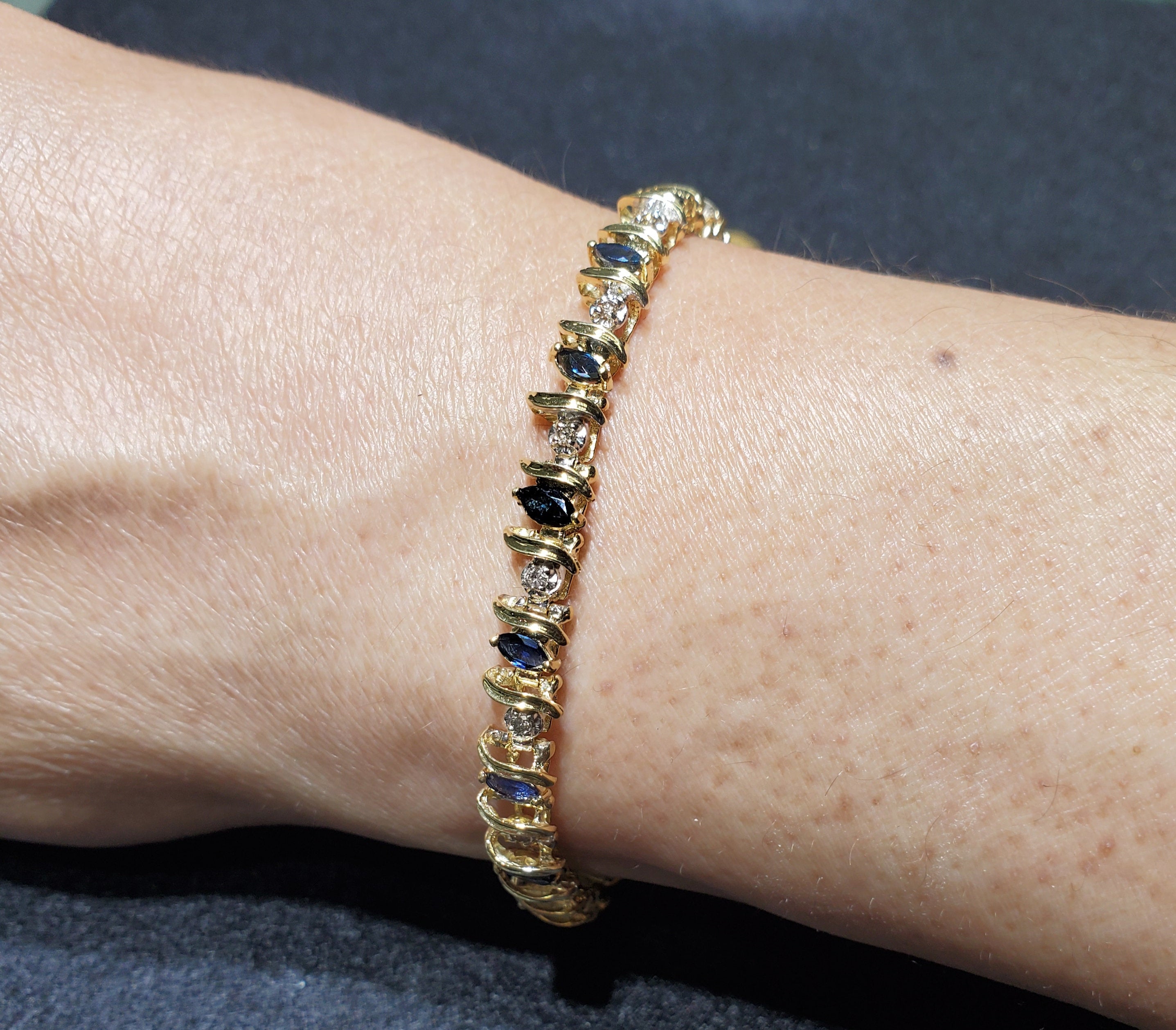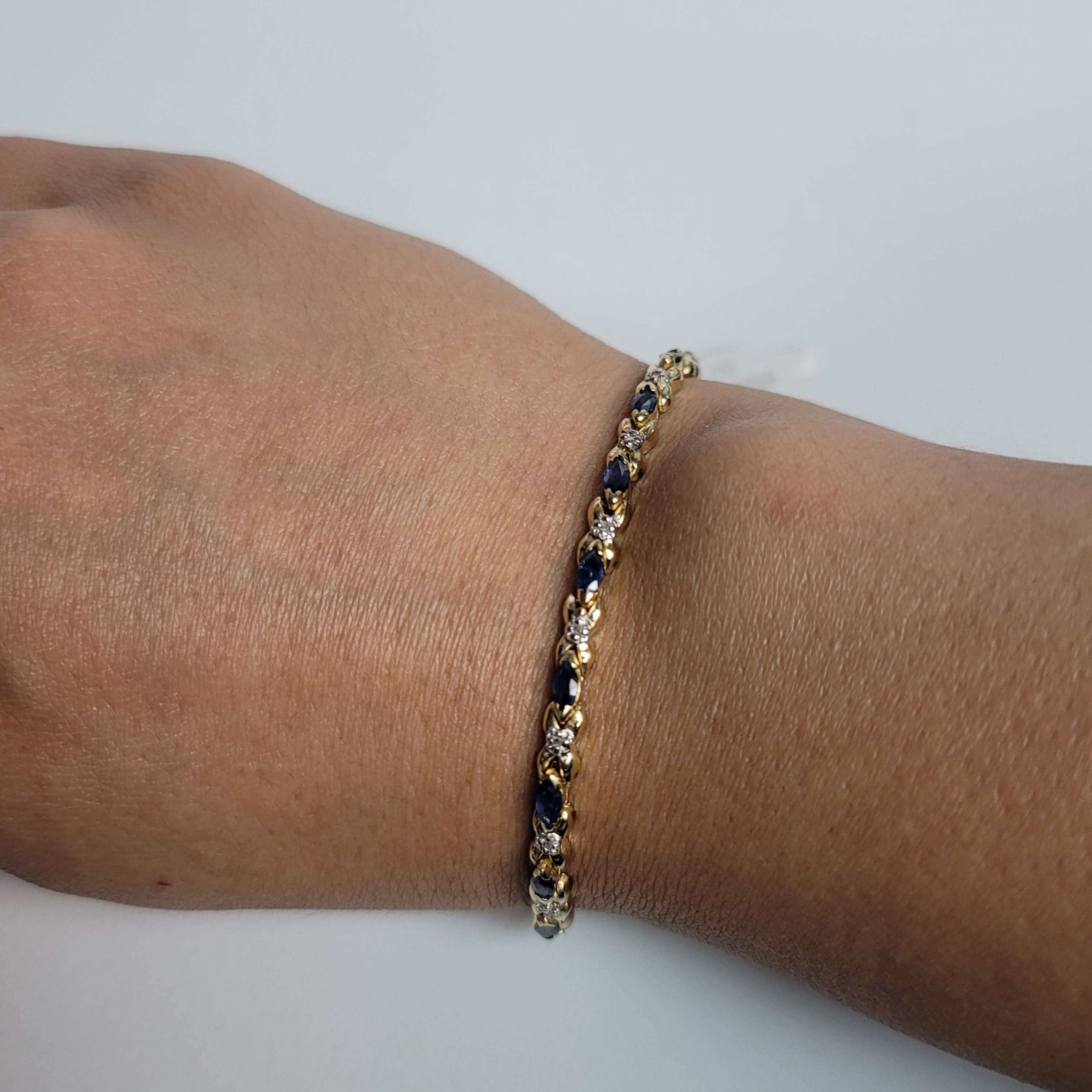 Sapphire Diamond Tennis Bracelet .75cttw 14k Yellow Gold
