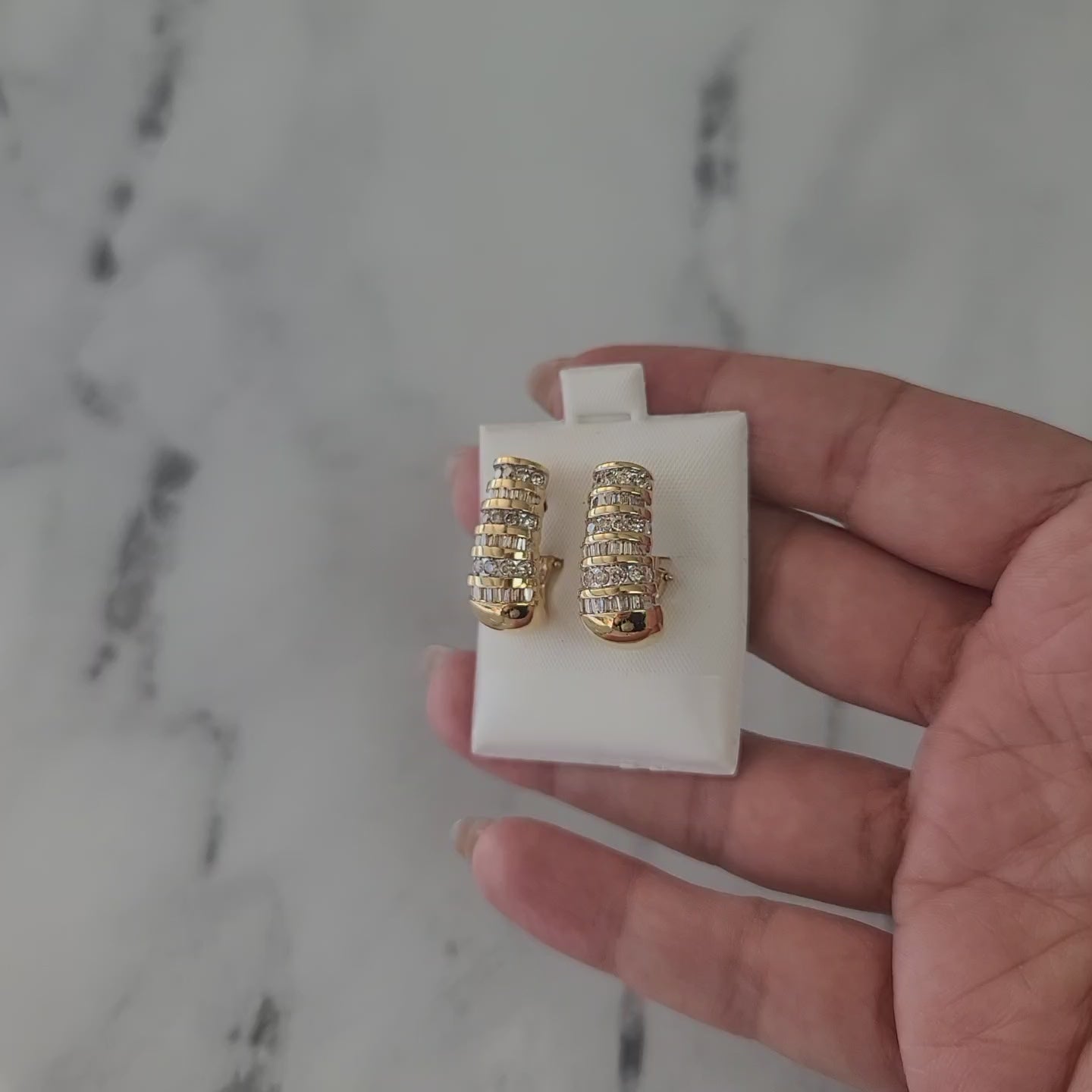 2 Carat Round & Baguette Diamond Earrings 14k Yellow Gold