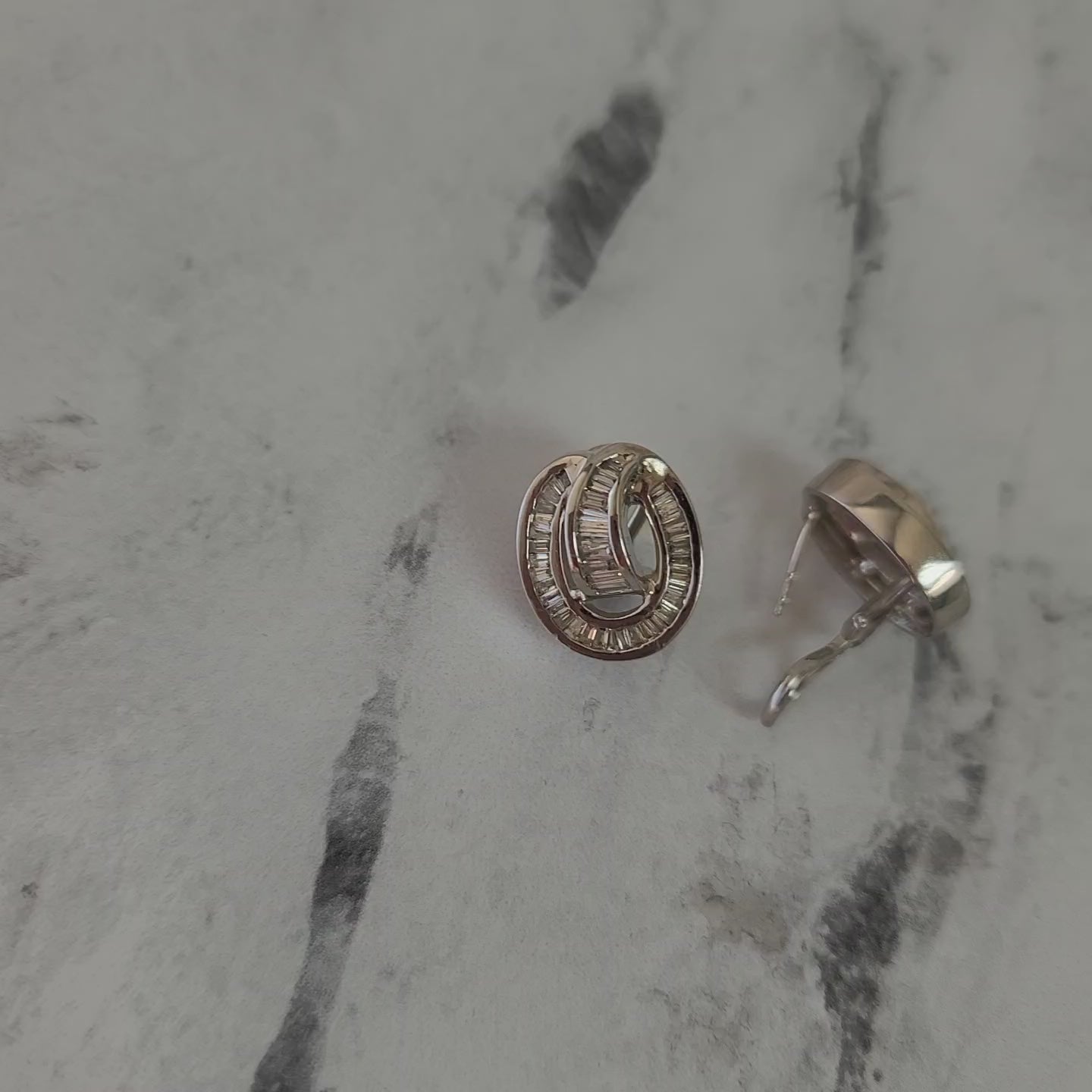 Baguette Circular Diamond Earrings 1.20cttw 14k White Gold