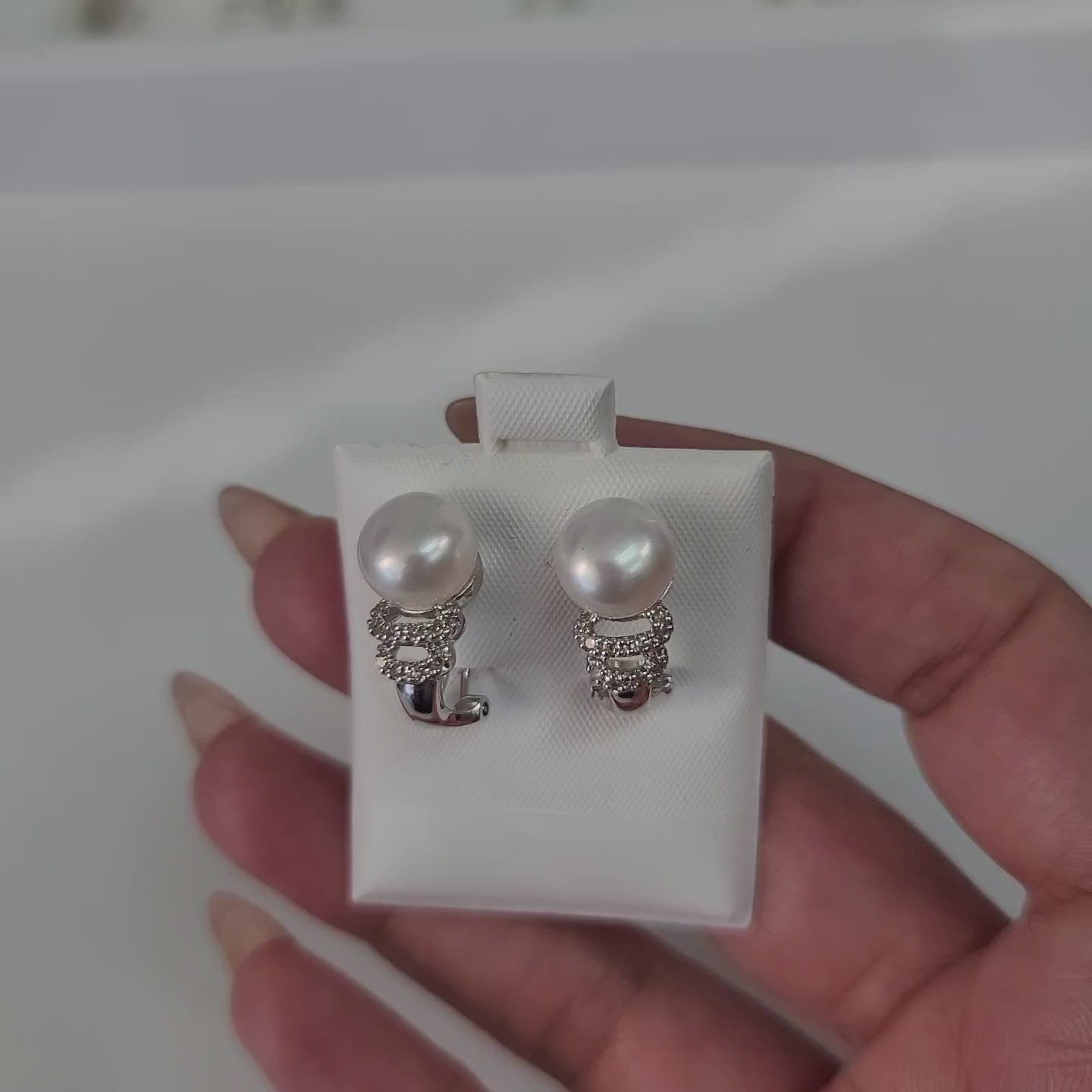 10MM Freshwater Pearl Diamond Eearrings .17cttw 14k White Gold