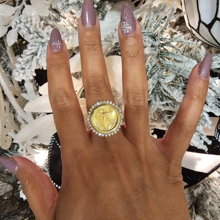 American Eagle Lady Liberty Rope Coin Frame Ring