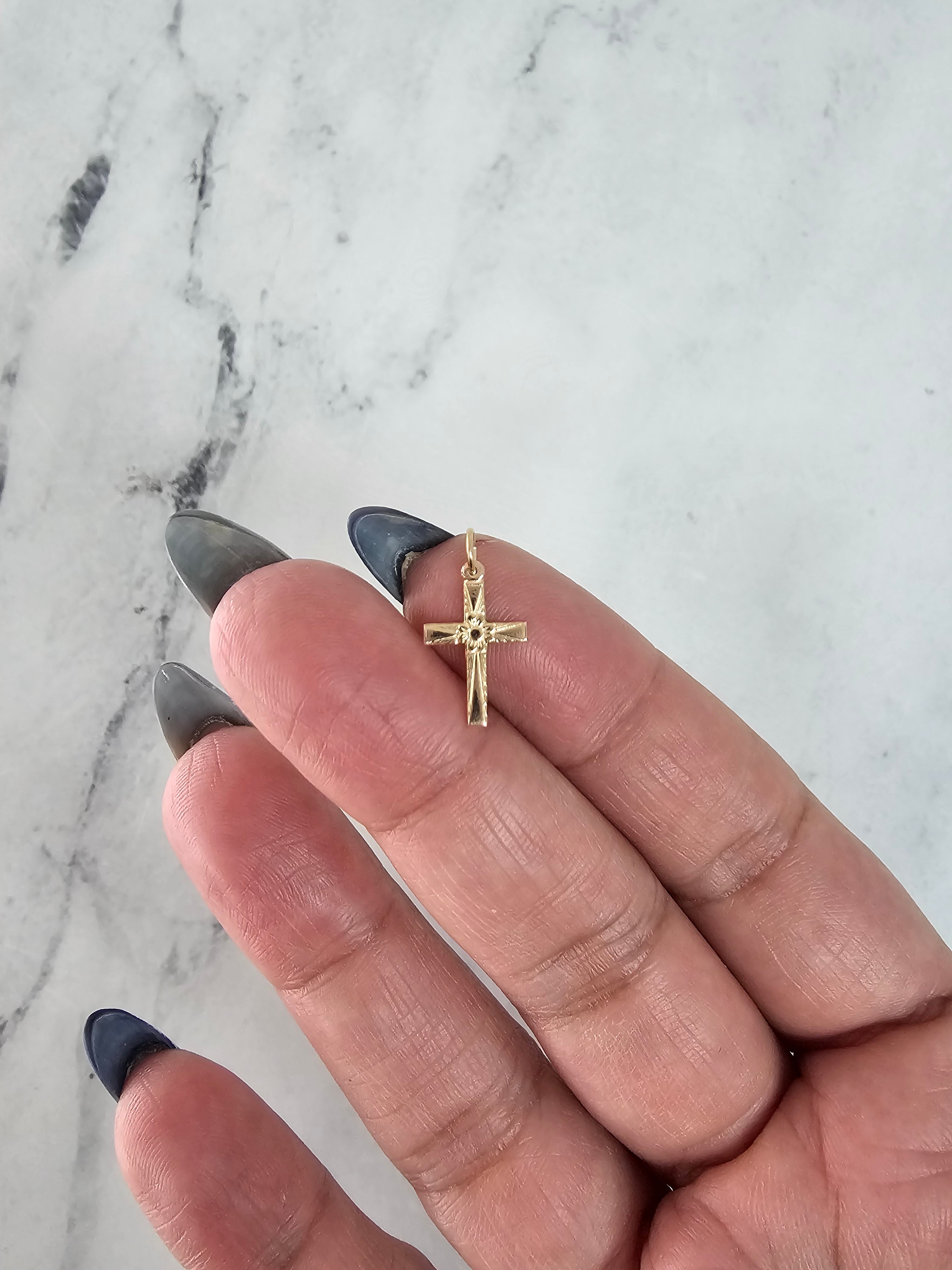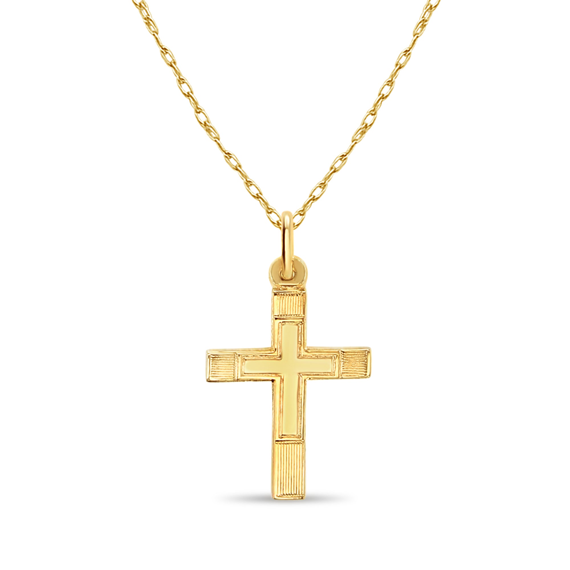 Textured Small Gold Cross Necklace 14k Yellow Gold
