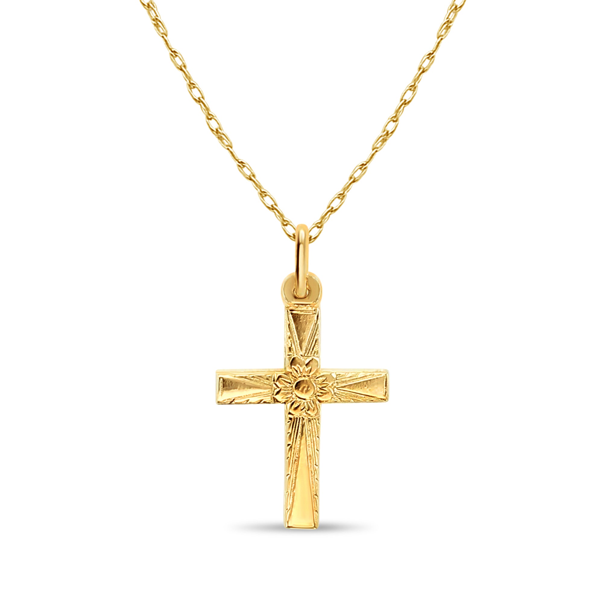 Vintage Style Cross with Flower Design in Center 14k Yellow Gold