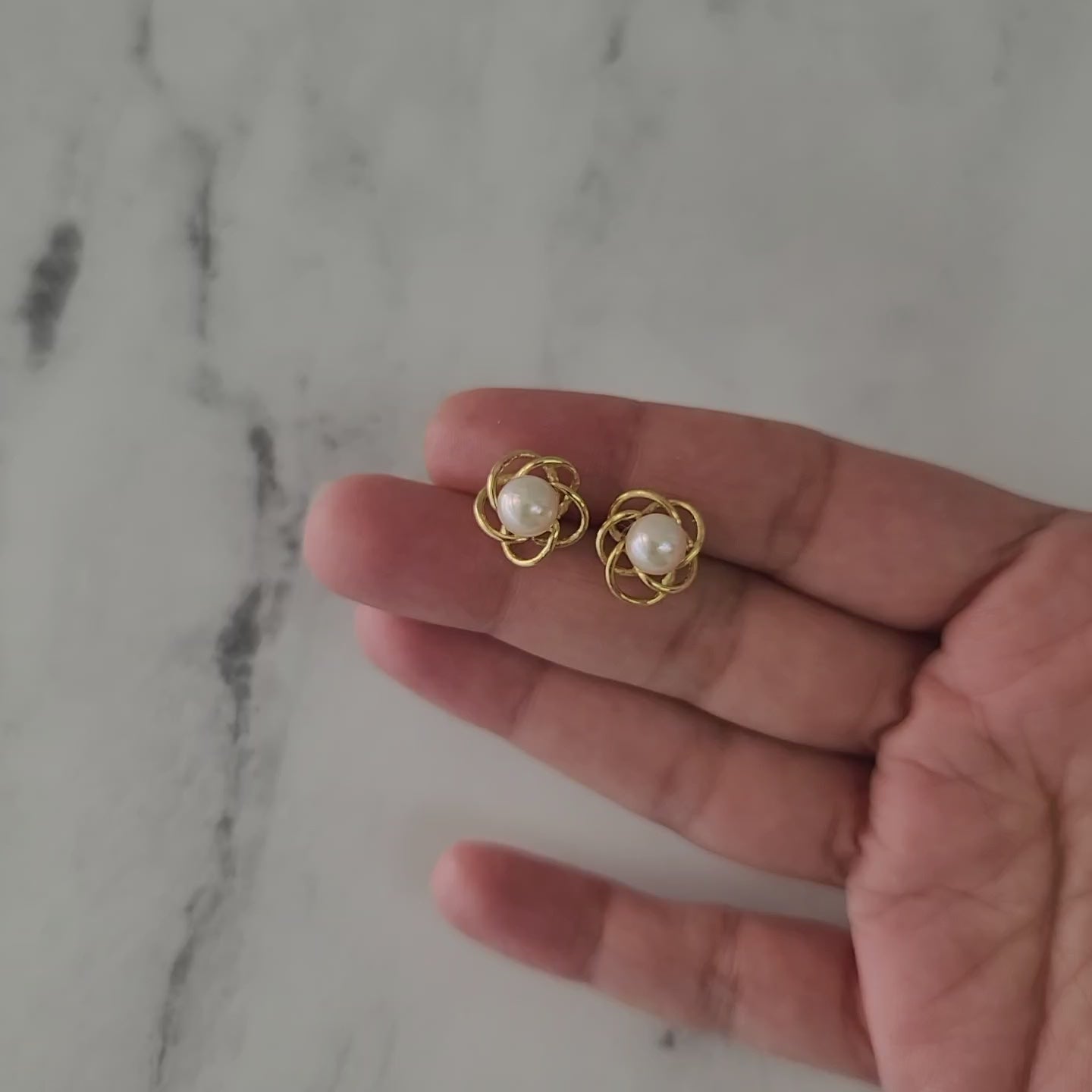 7MM Pearl Studs with Gold Round Design 14k Yellow Gold