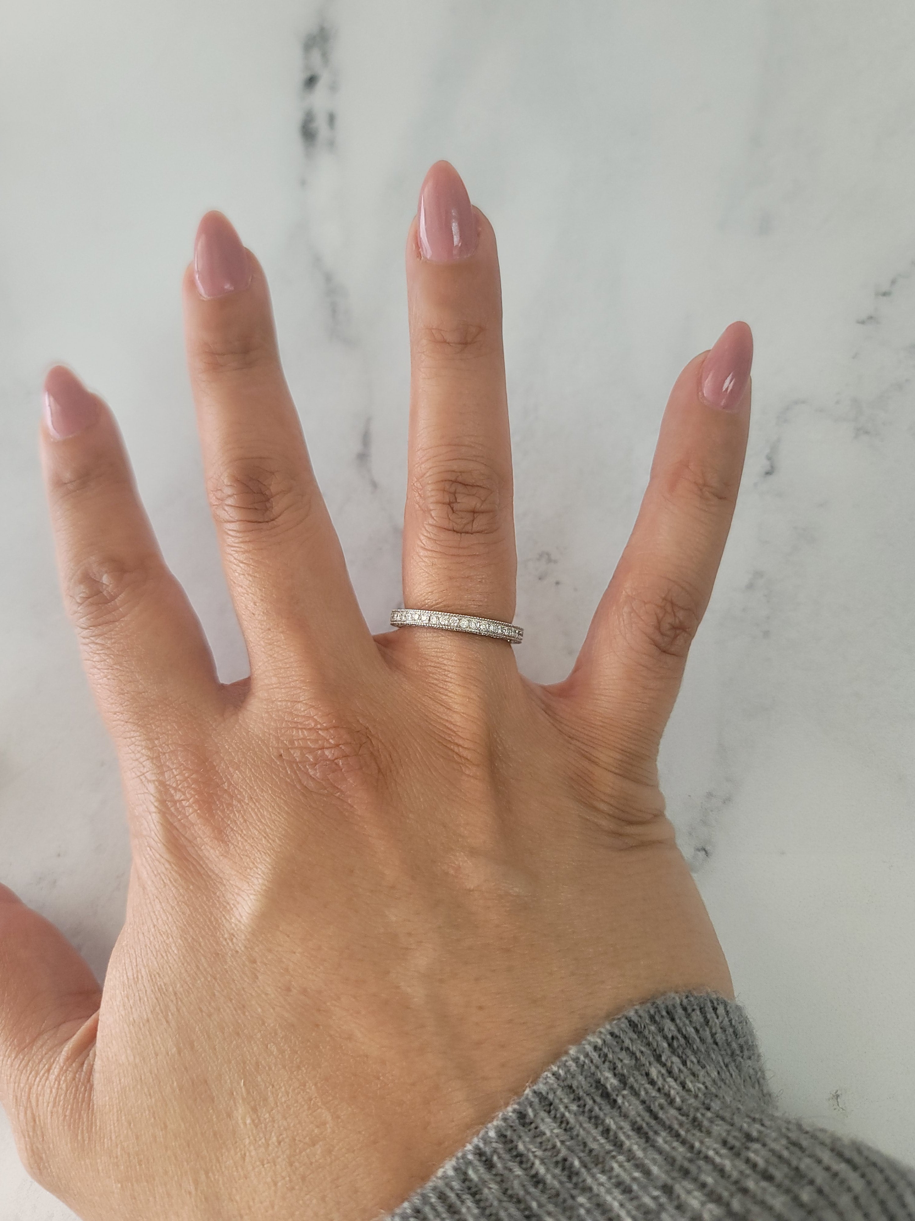 Alianza de boda de oro blanco de 18 k con pavé de diamantes y engaste de cuentas de 1 quilate