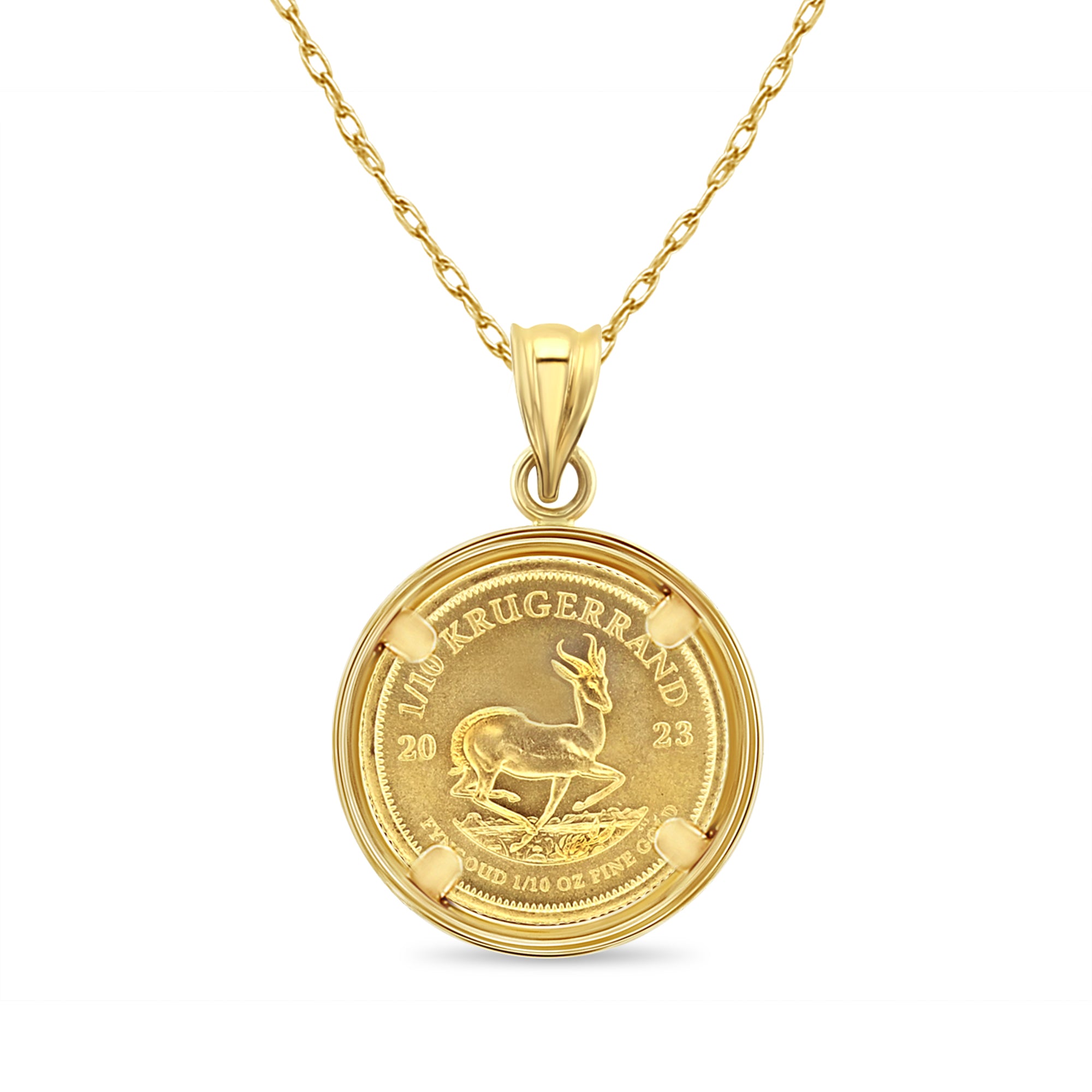 Collar con moneda de oro Krugerrand sudafricano de 1/10 oz