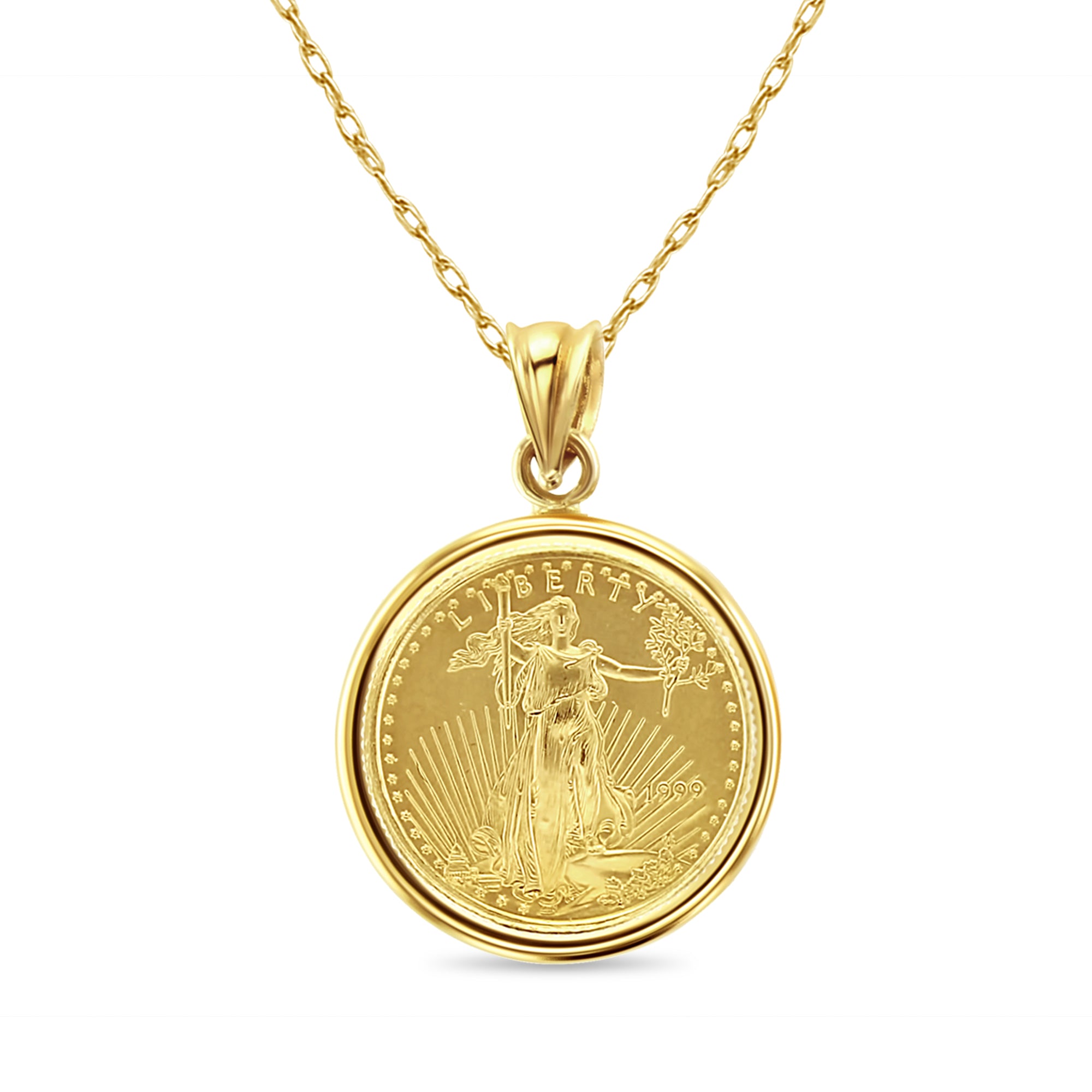 Collar con moneda de la Libertad en oro fino de 1/10 oz con bisel pulido
