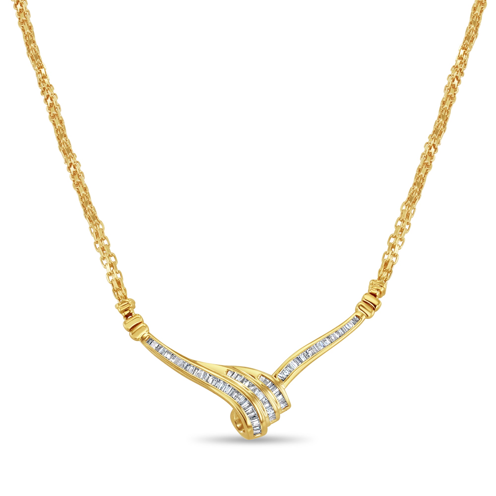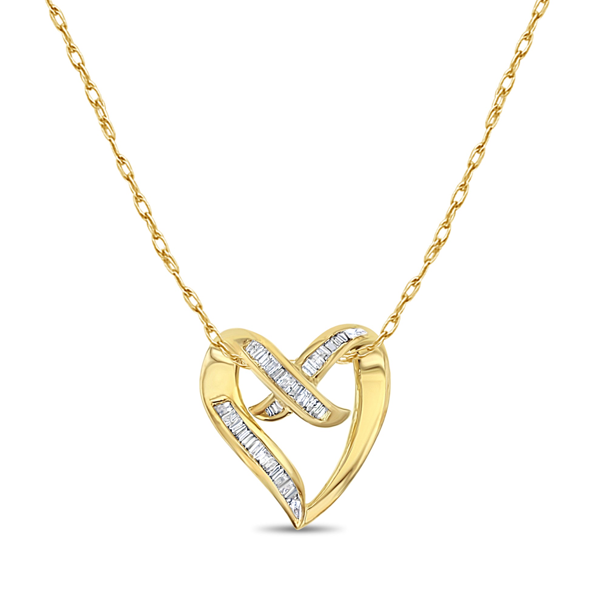 Collar con corazón flotante de diamantes de talla baguette de 1 quilate