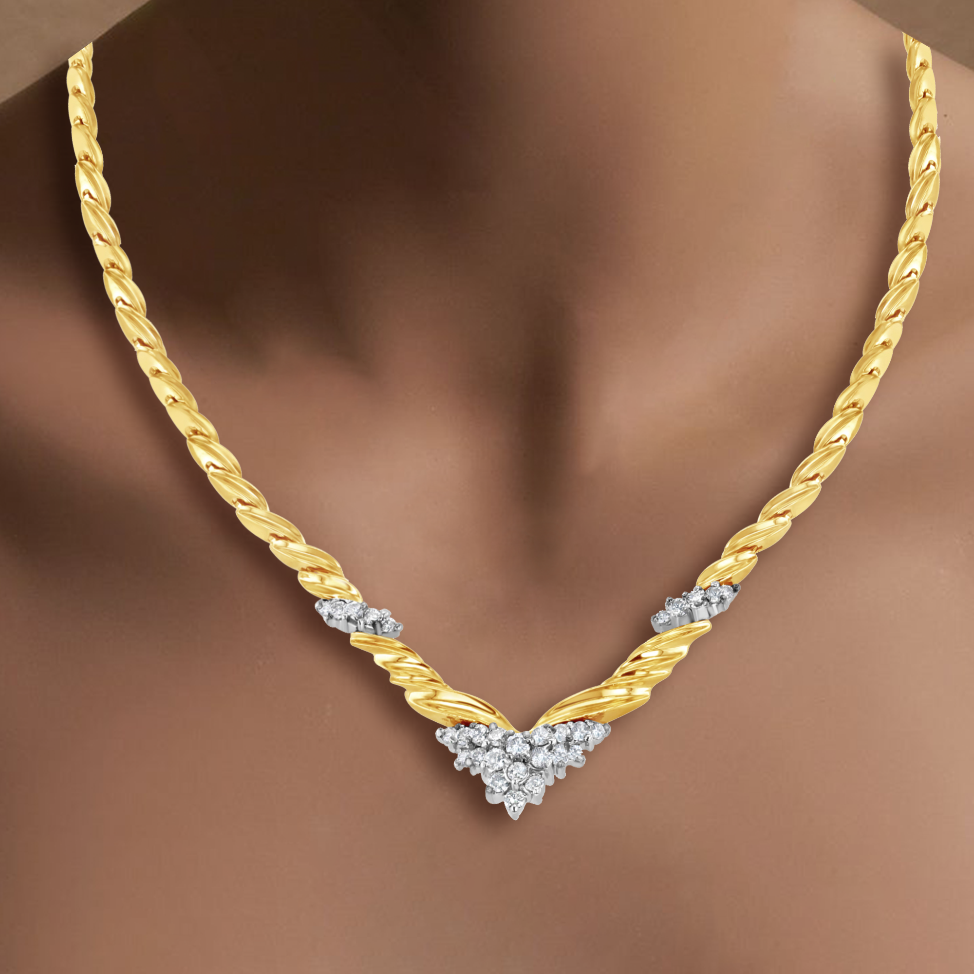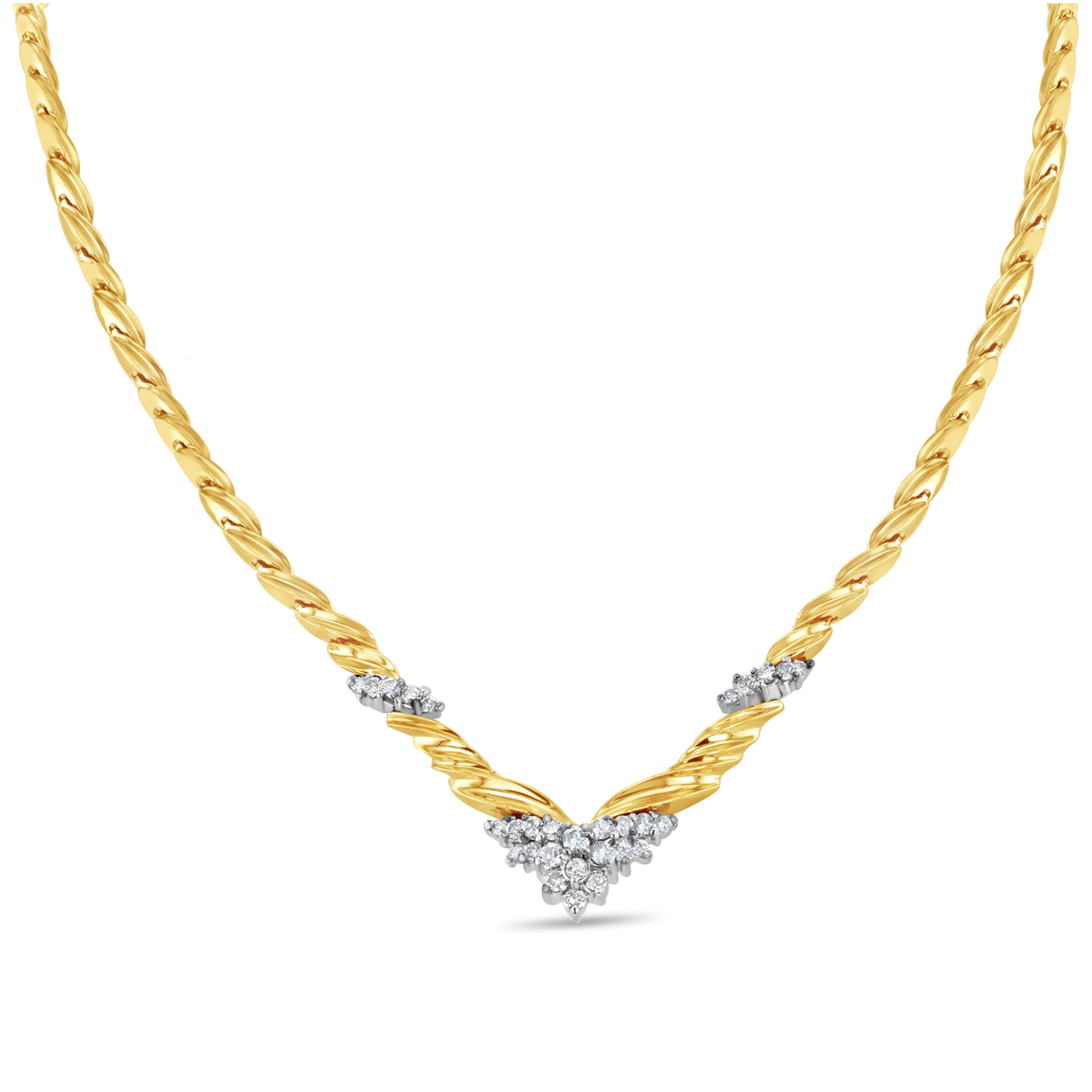 Collar estilo vintage con diamantes de dos tonos en forma de "V"