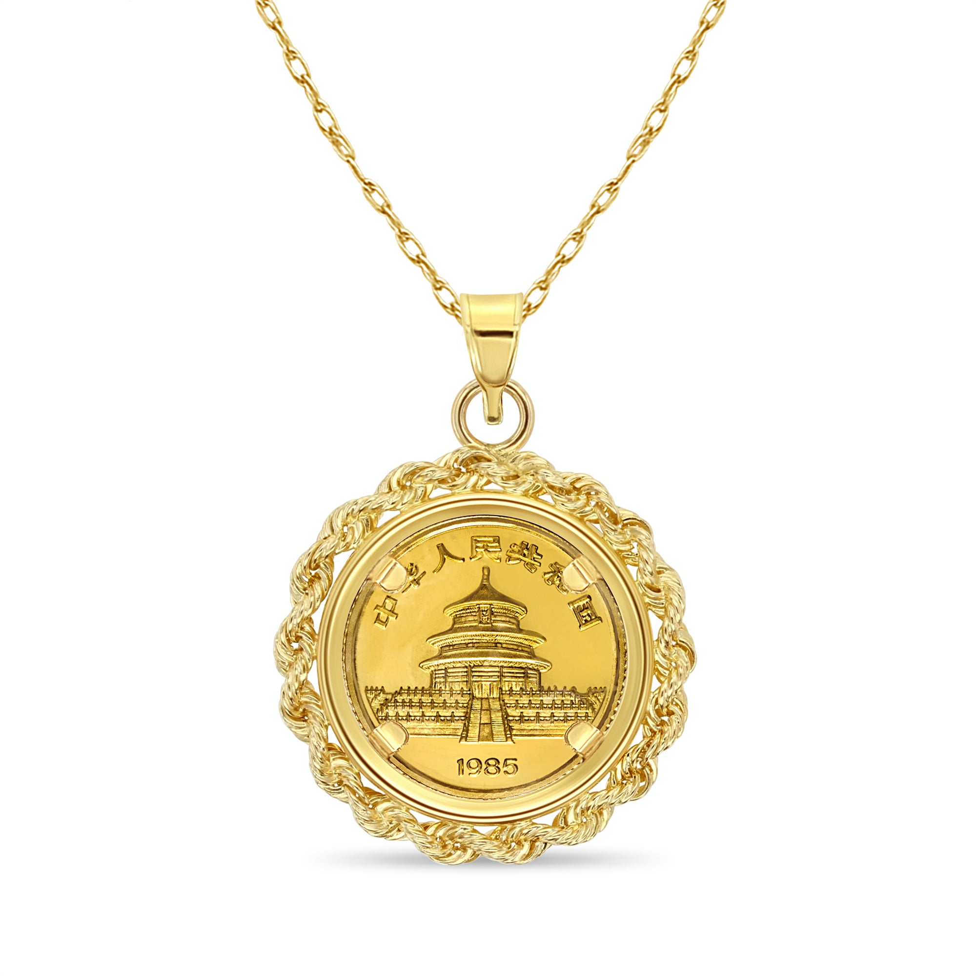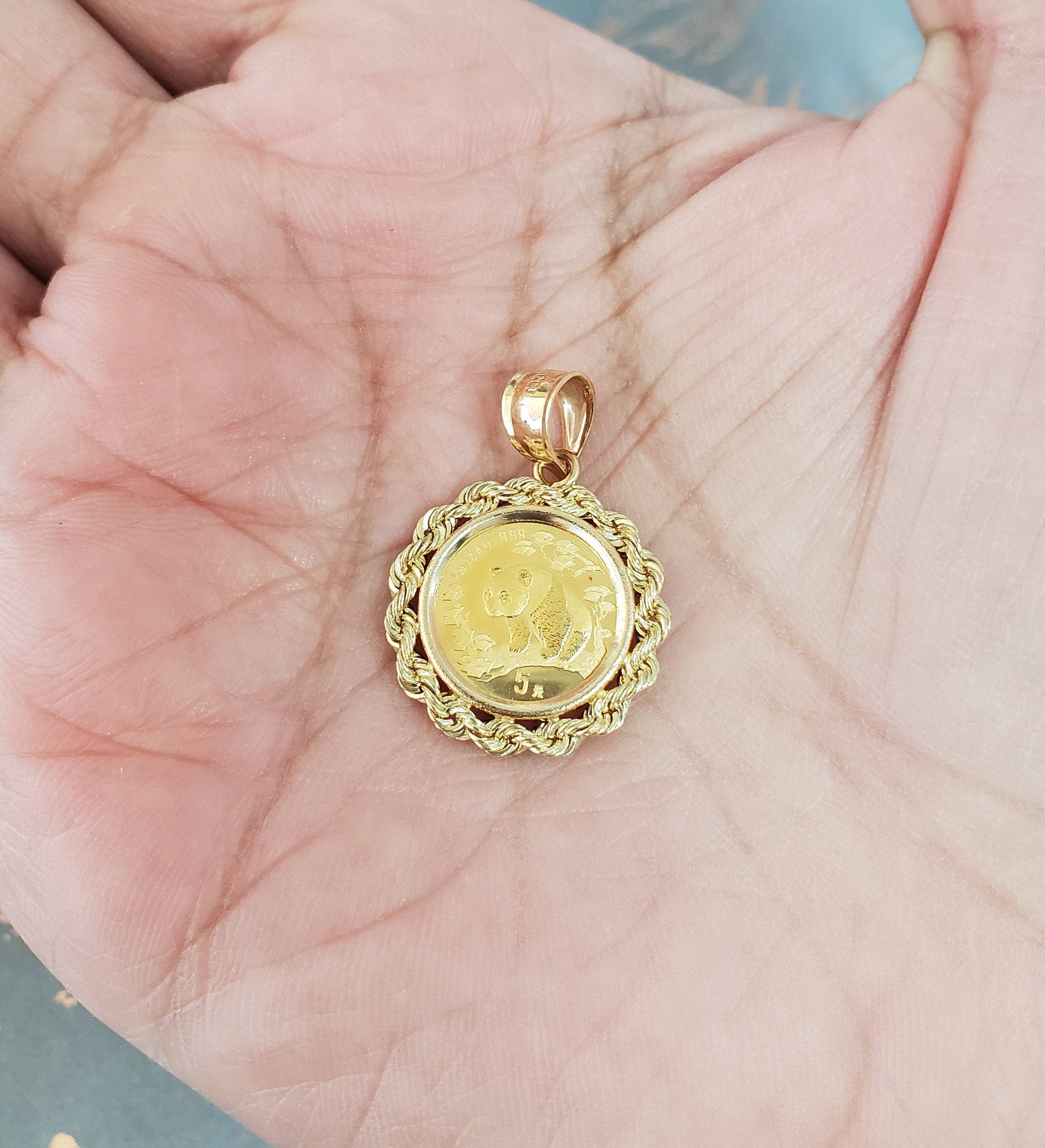 Collar con bisel de moneda de oro de panda chino de 1/10 oz en oro amarillo de 14 k