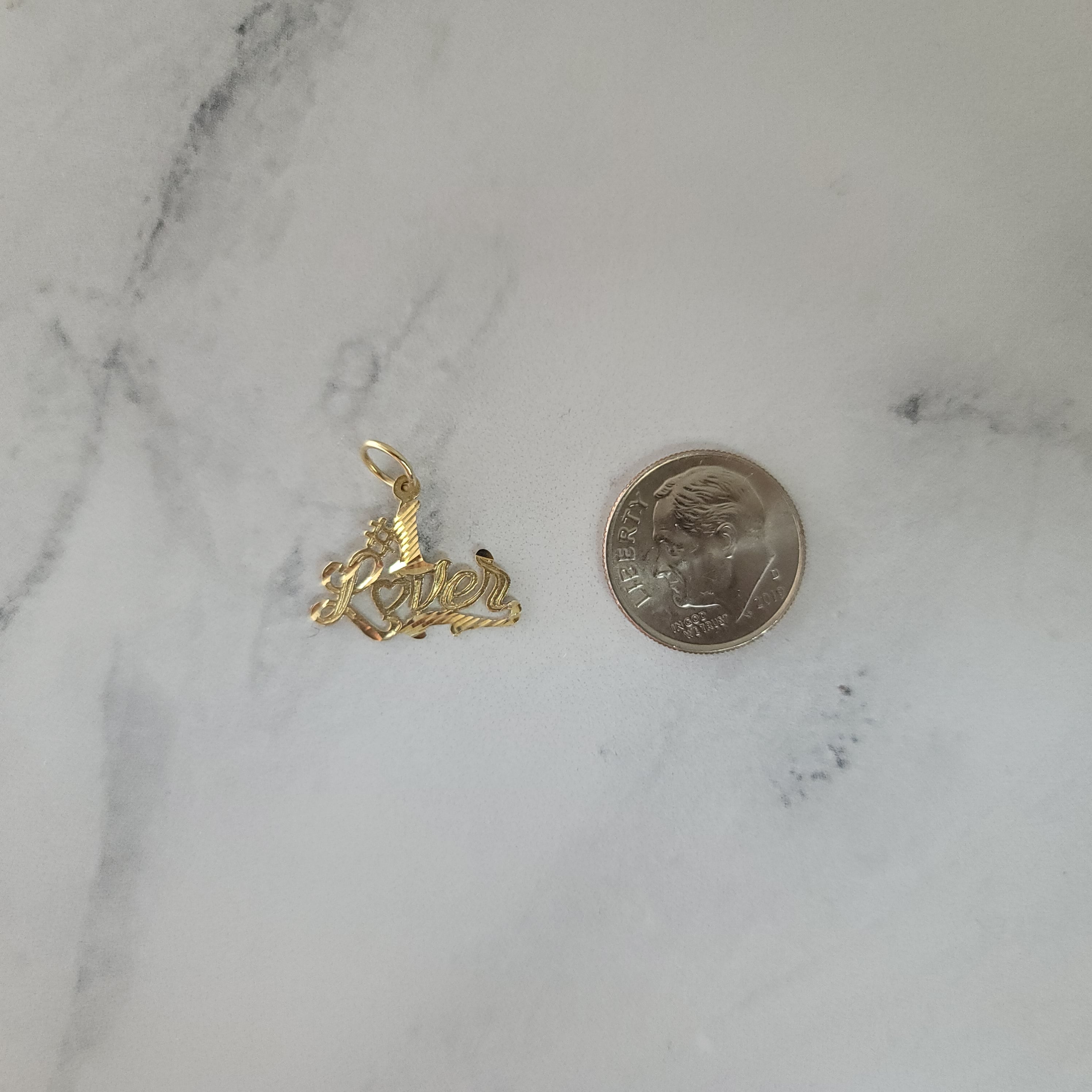 "Te amo" en letra cursiva en oro amarillo de 14 k