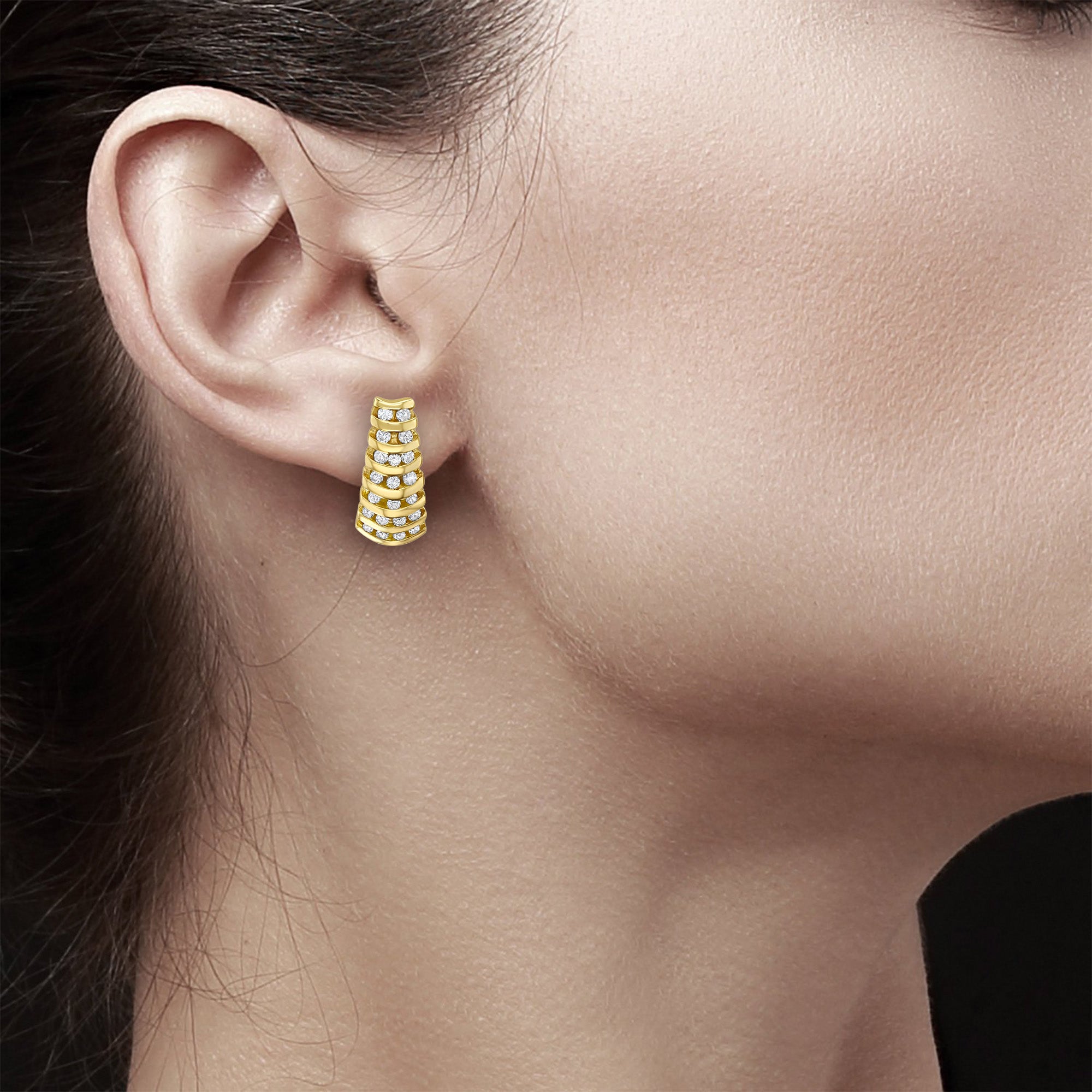 Pendientes de diamantes engastados en canal de 1 quilate en oro amarillo de 14 k