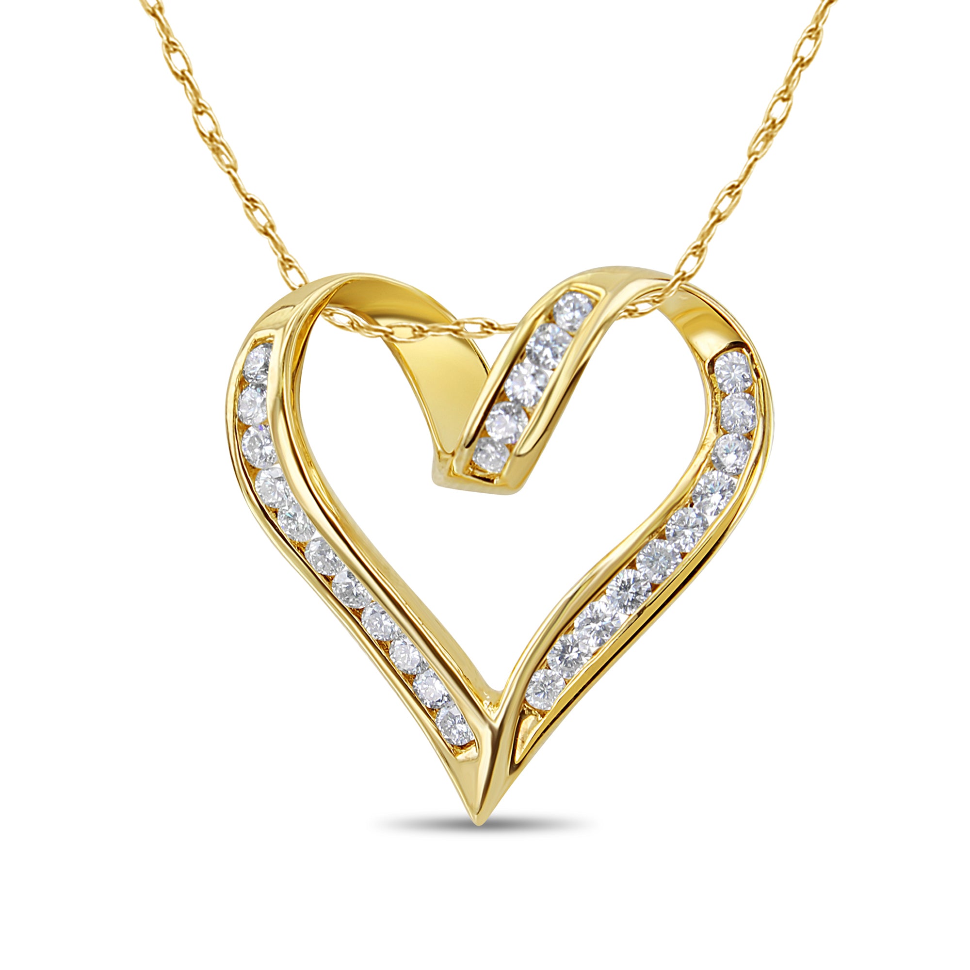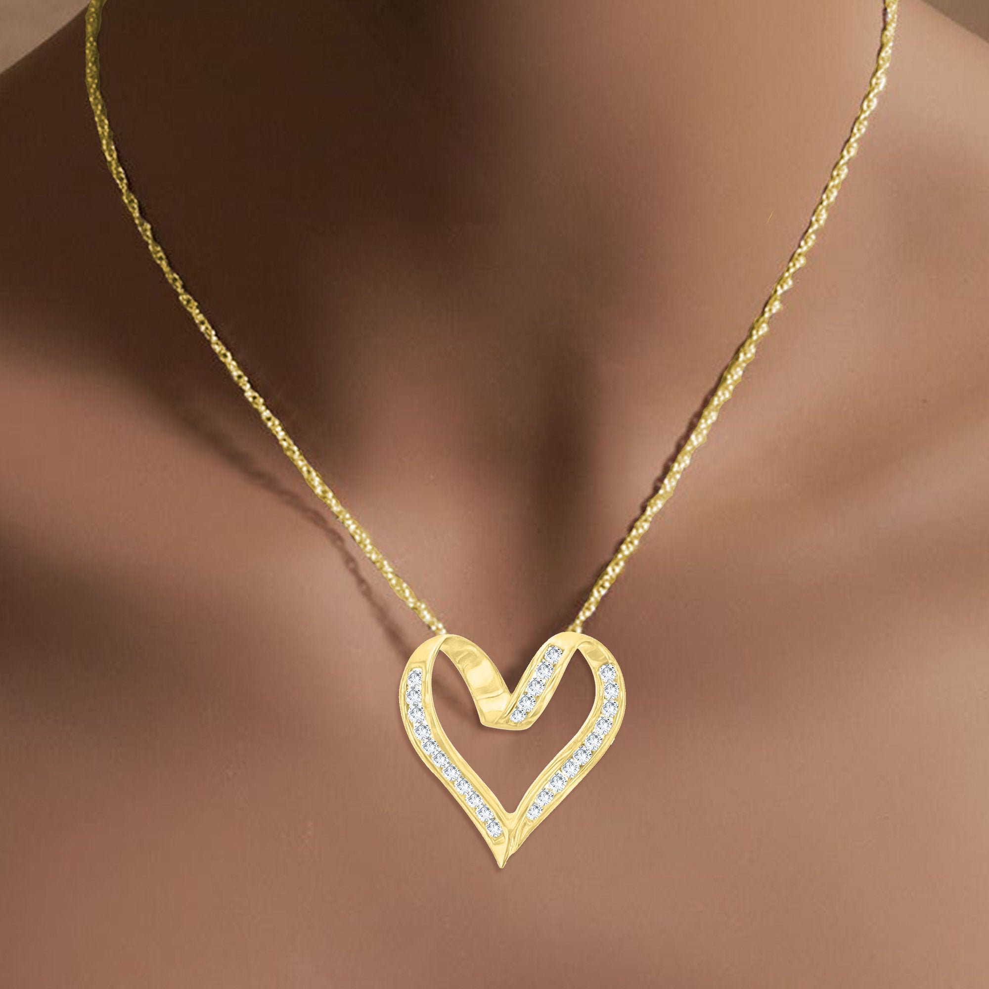 Collar con corazón flotante de diamantes de 1/2 ct en oro amarillo de 14 k