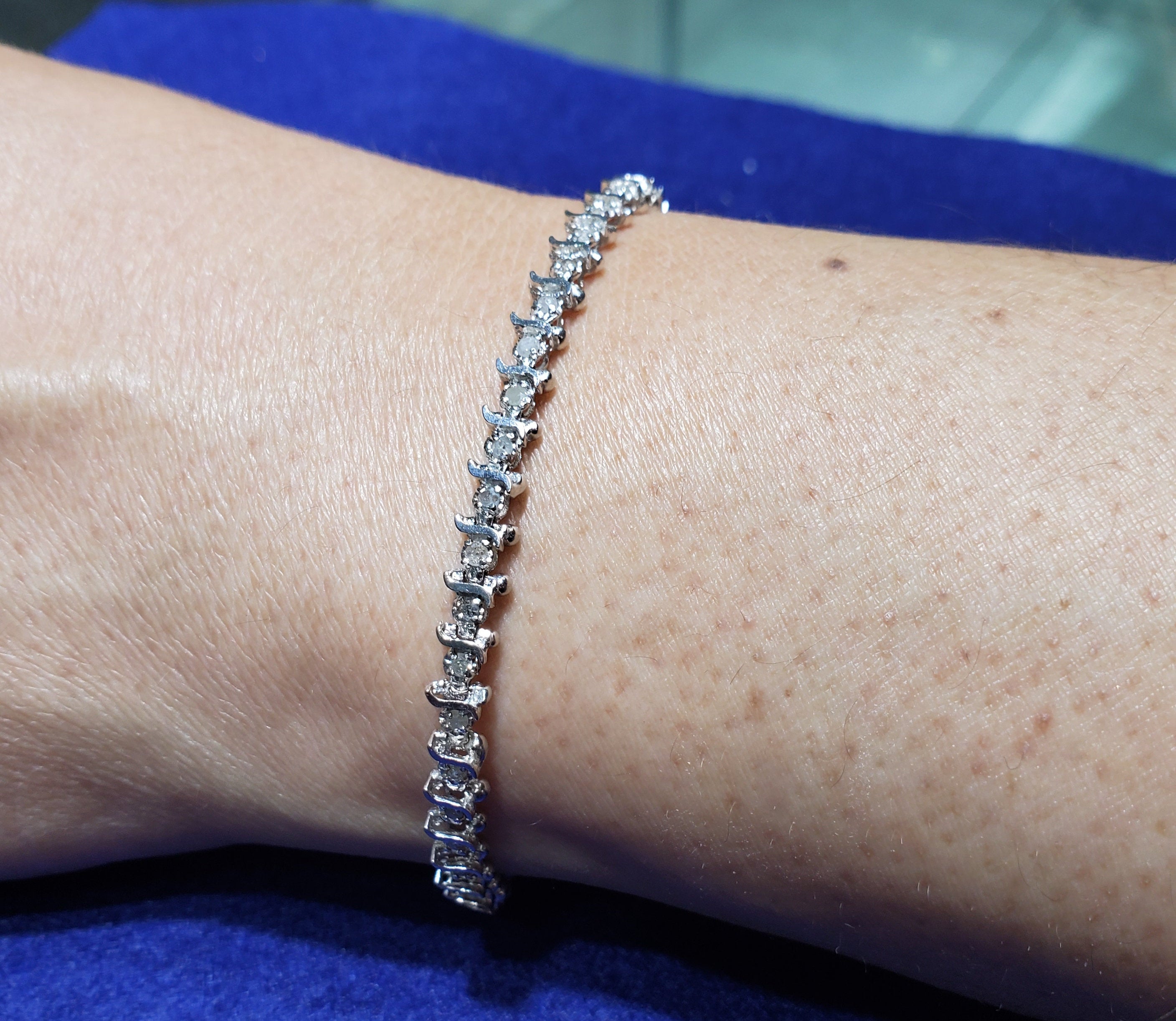 Pulsera de tenis con diamantes estilo S de 1 quilate