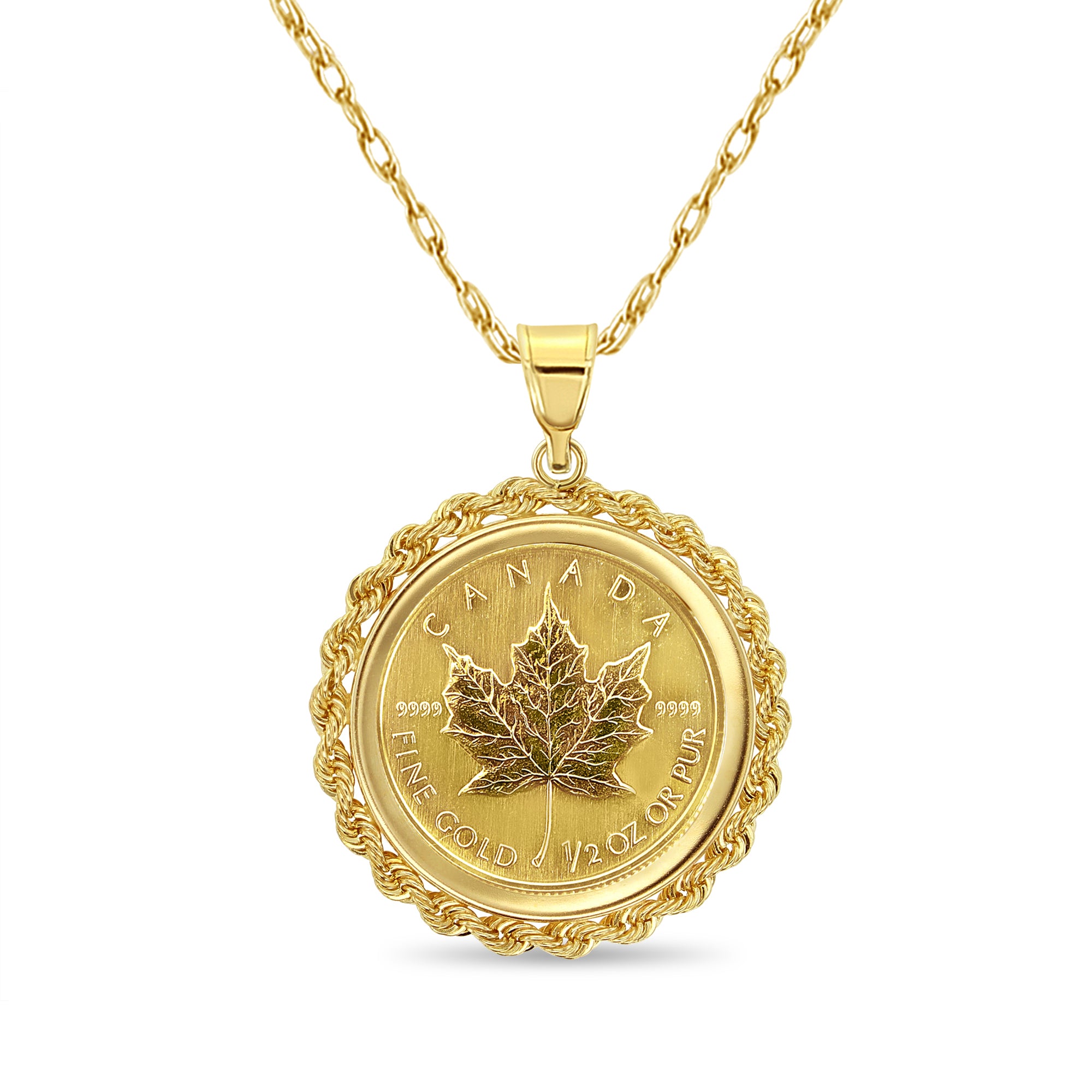 Collar con moneda de hoja de arce canadiense de 1/2 oz con bisel de cuerda en oro amarillo de 14 k