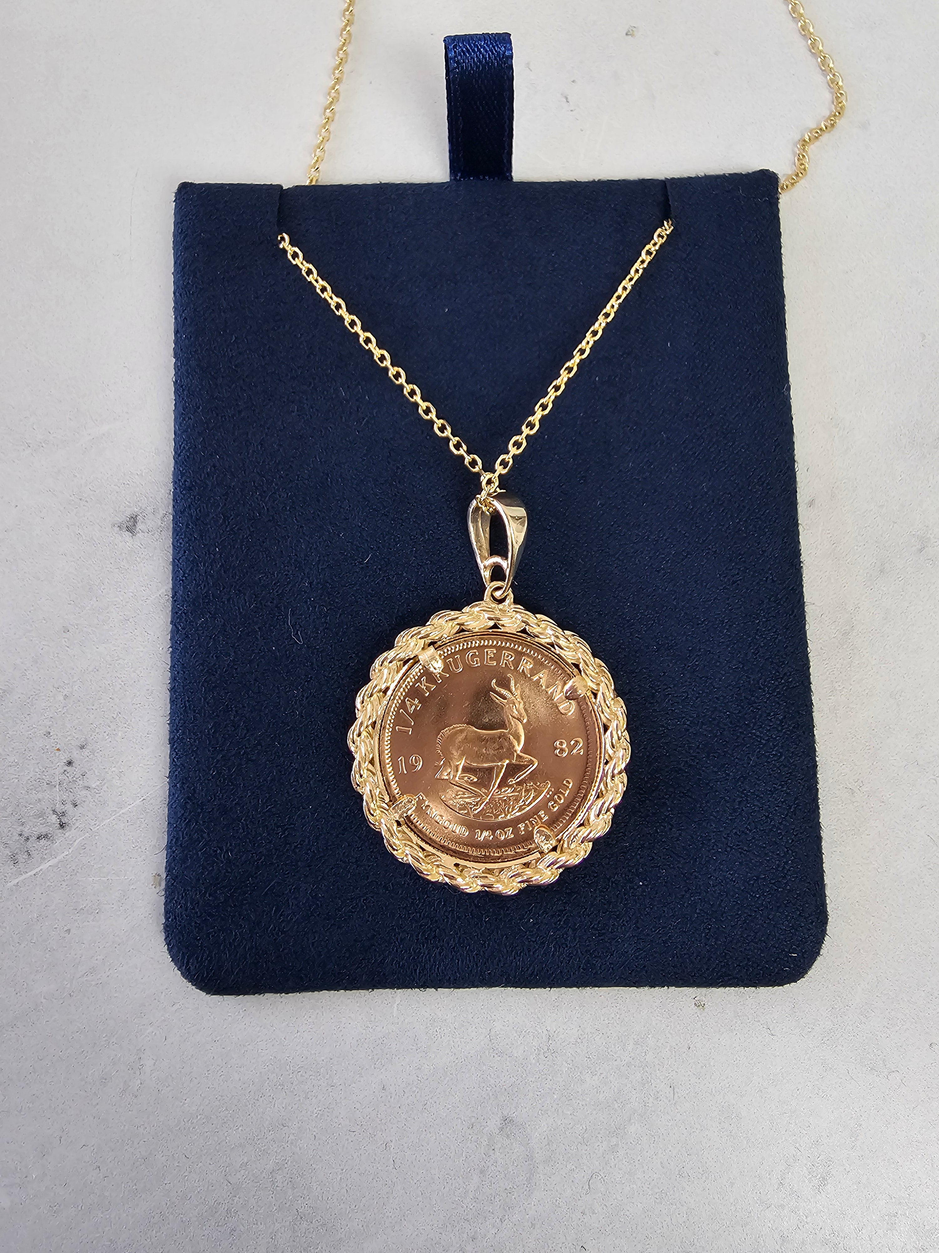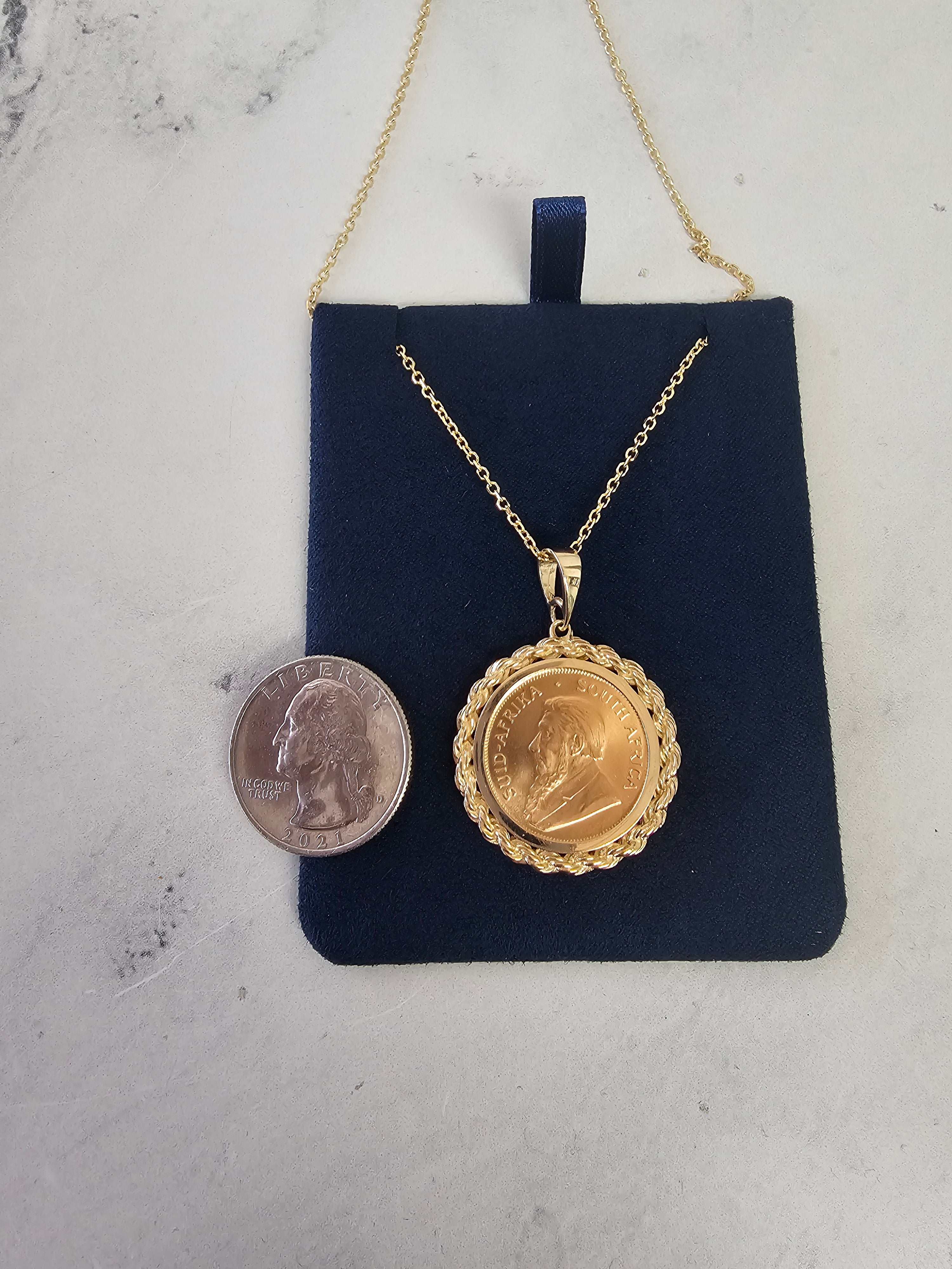Collar con moneda Krugerrand sudafricana de 1/4 oz y halo de cuerda