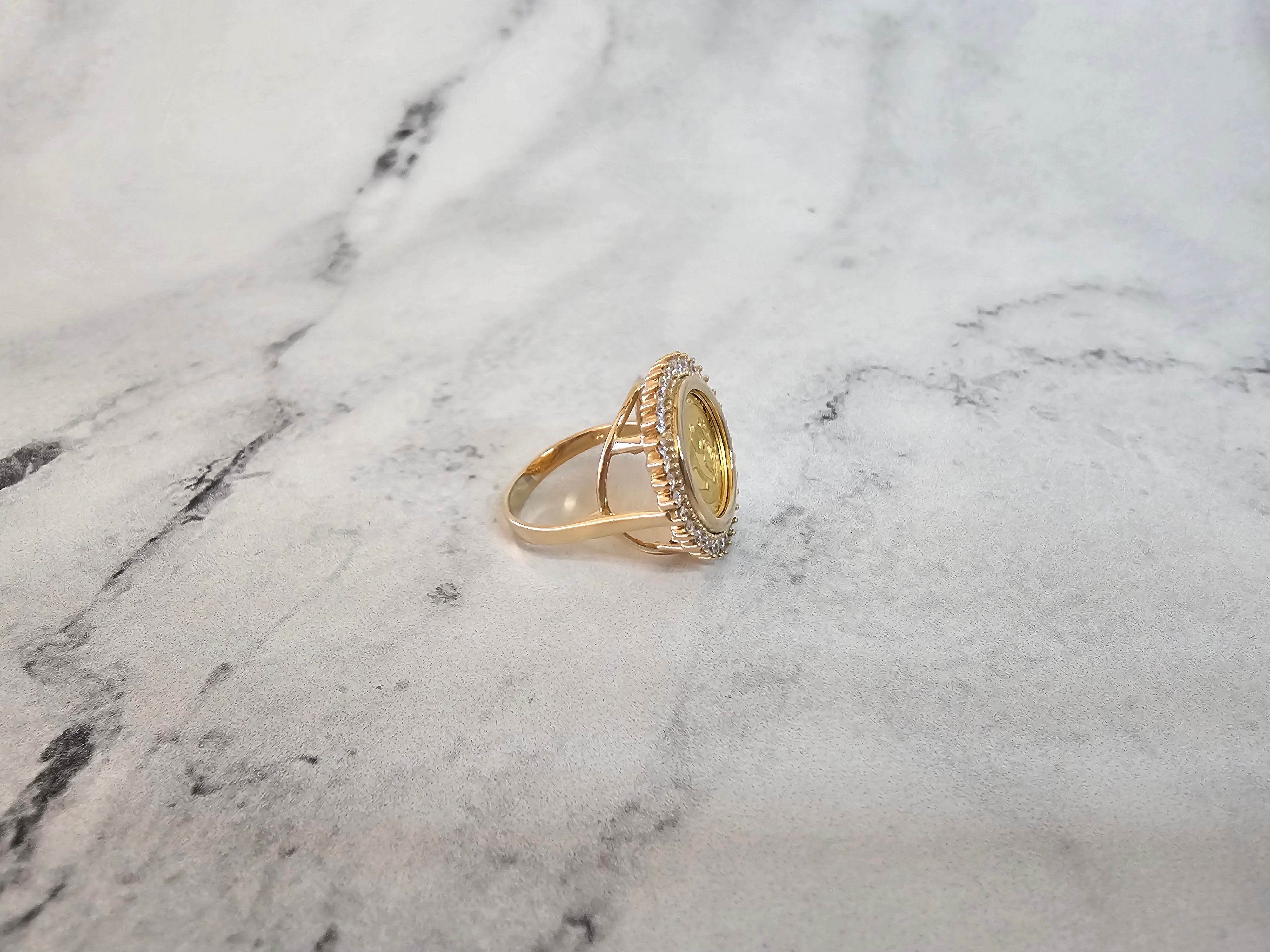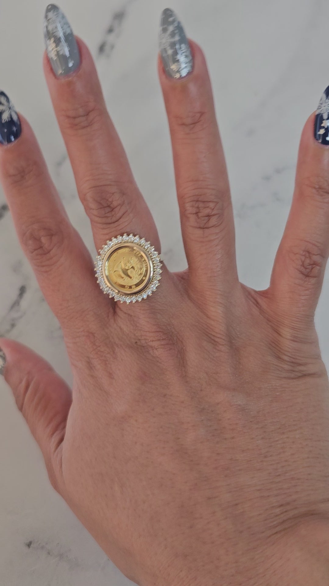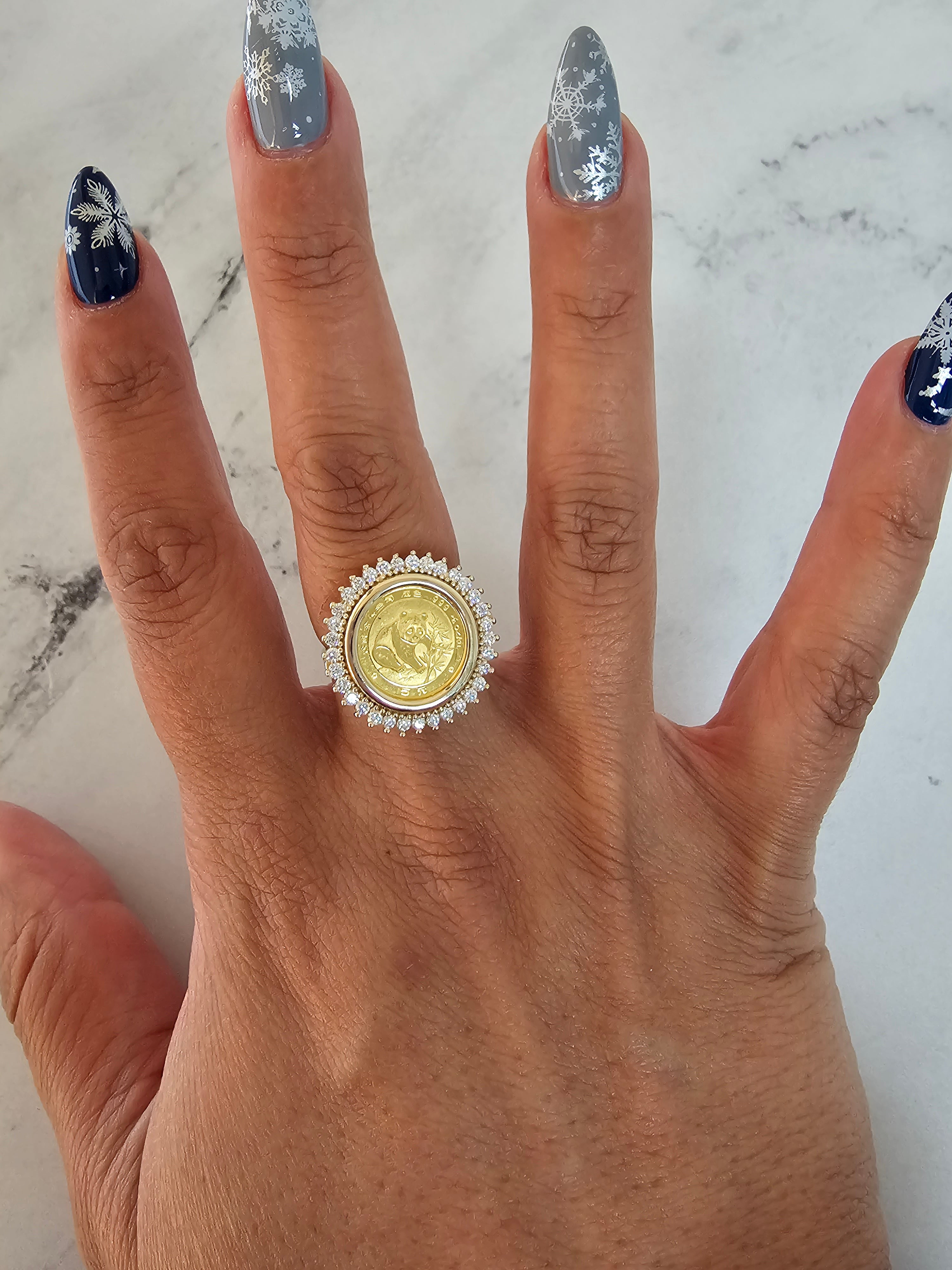 Anillo con moneda de panda de 20 onzas con halo de diamantes