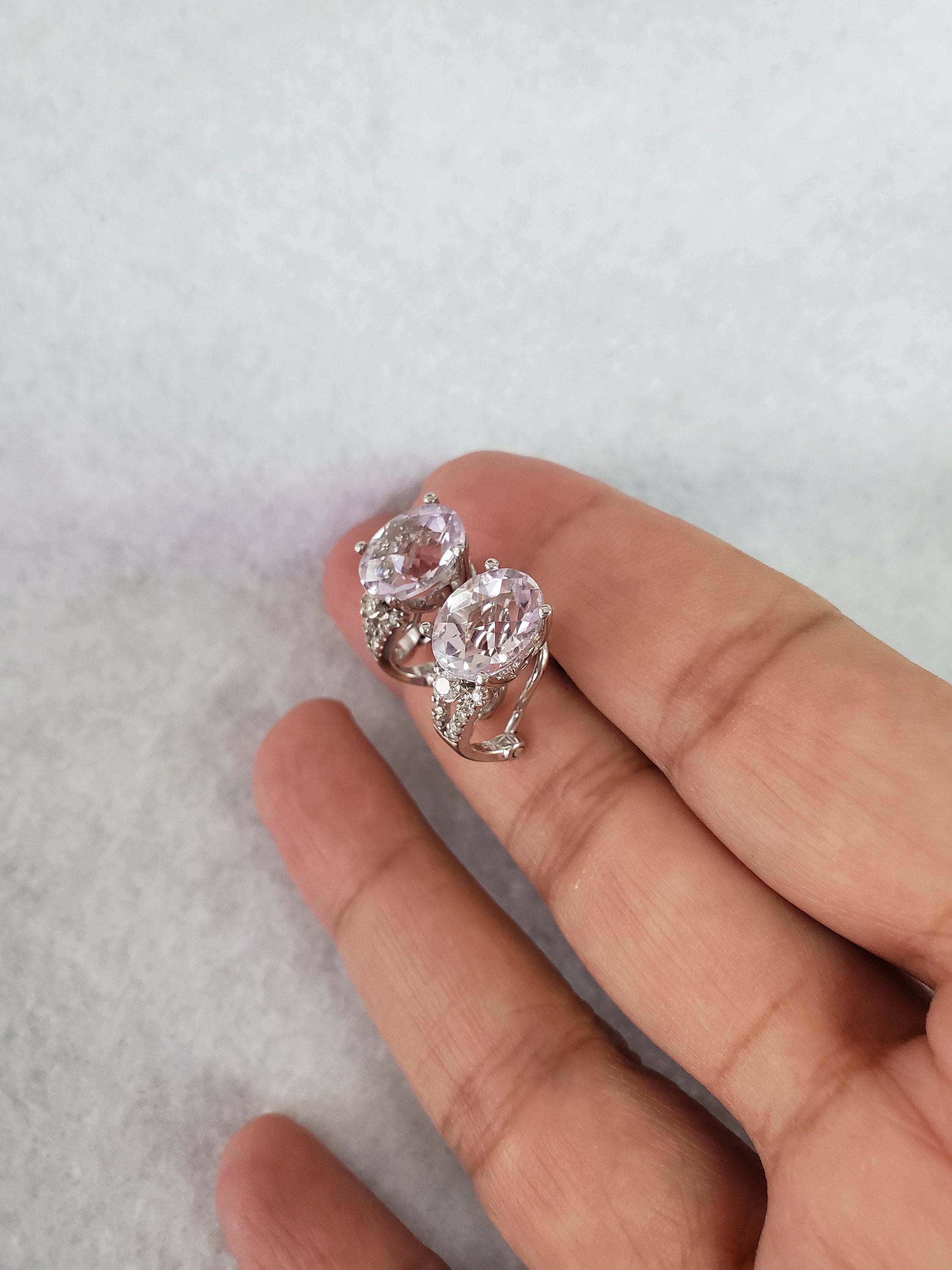 Pendientes de diamantes y amatista ovalada de 0,43 ct en oro blanco de 14 k