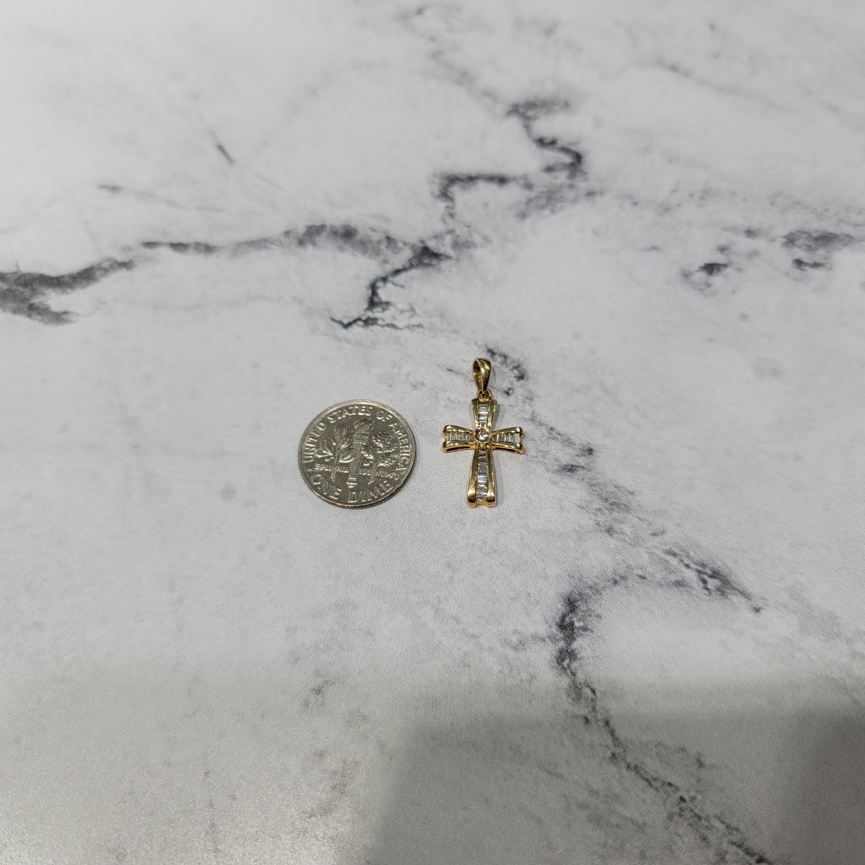 Collar con cruz de diamantes en talla baguette pequeña
