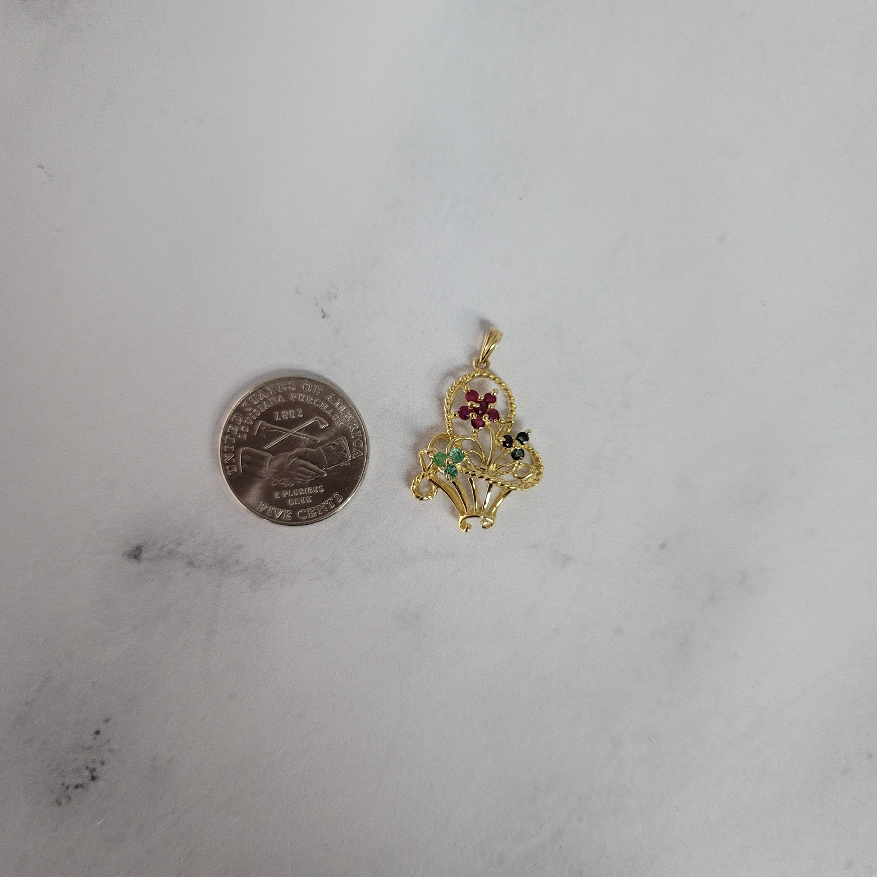Collar con canasta de flores de esmeralda, zafiro y rubí