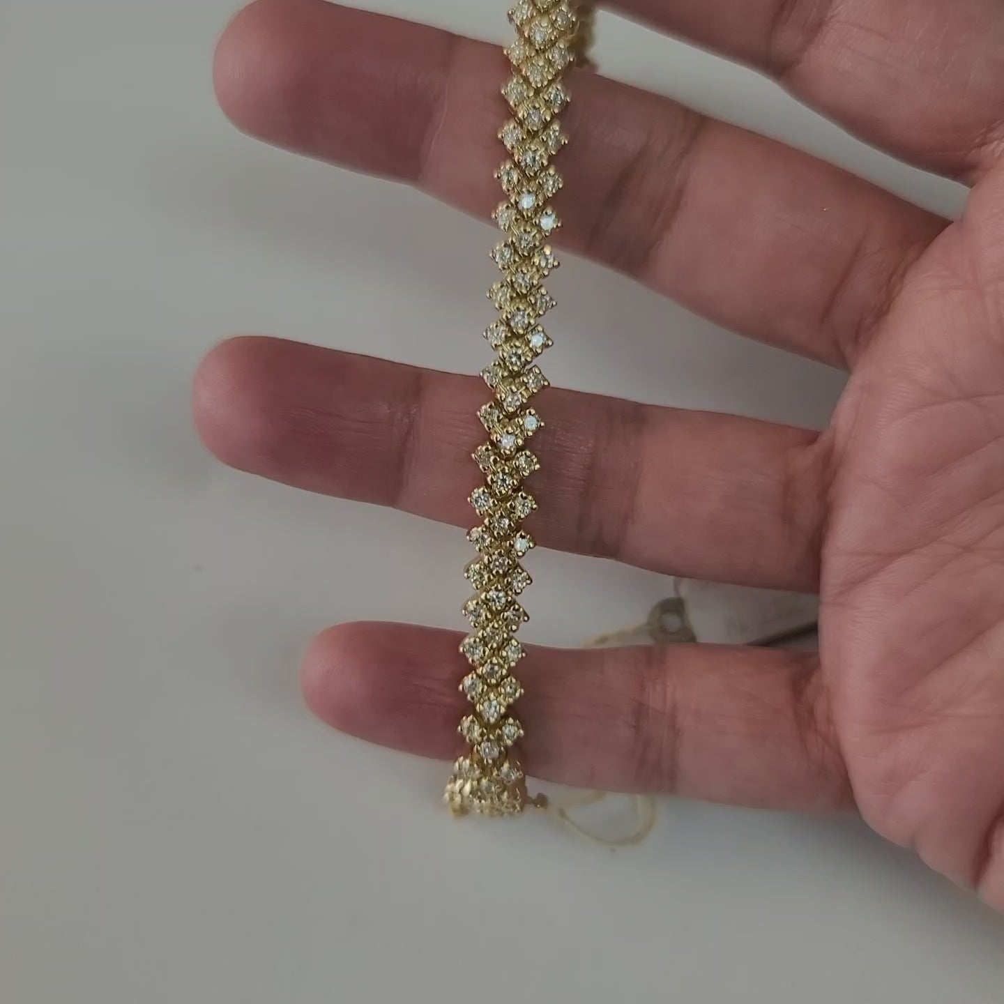 Pulsera de tenis con diamantes en forma de tejido de canasta de 4,25 cts en oro amarillo de 14 k