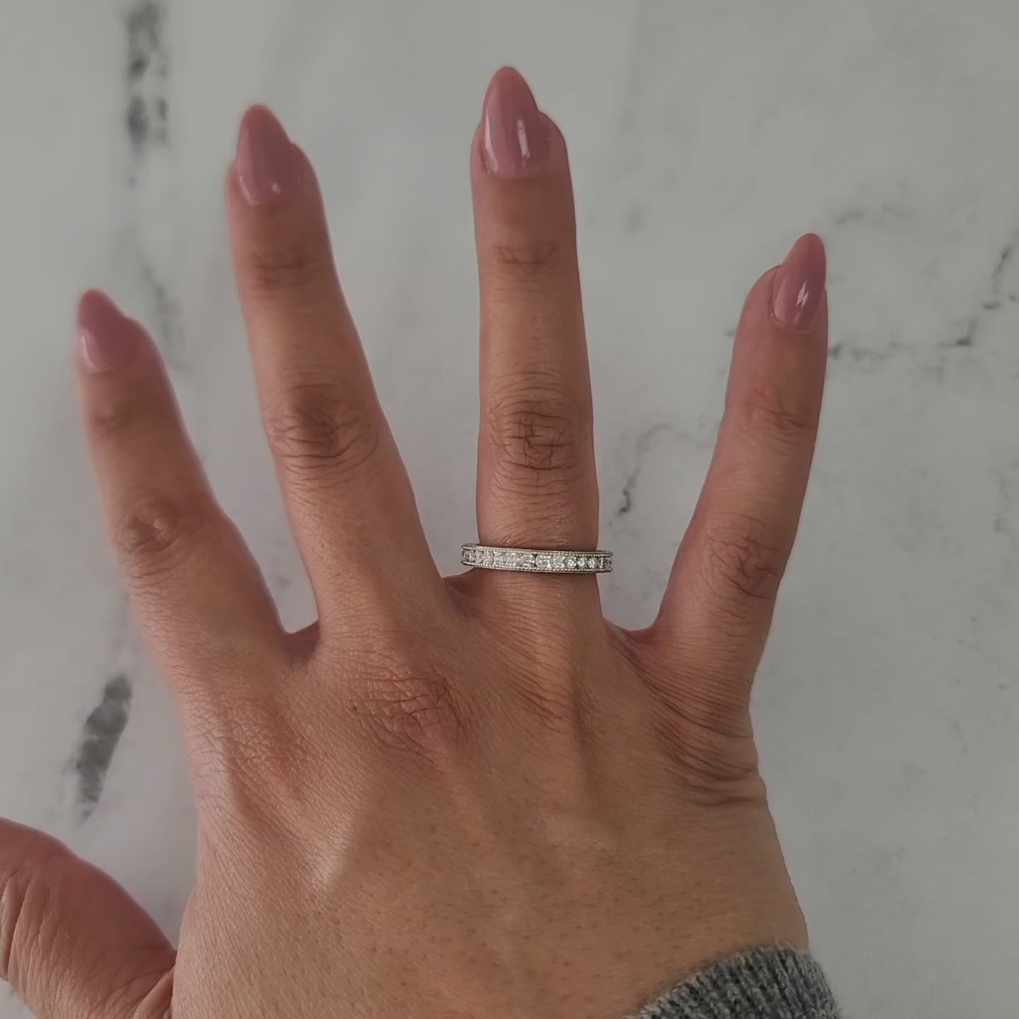 Alianza de boda con pavé de diamantes y engaste de cuentas en oro blanco de 14 k