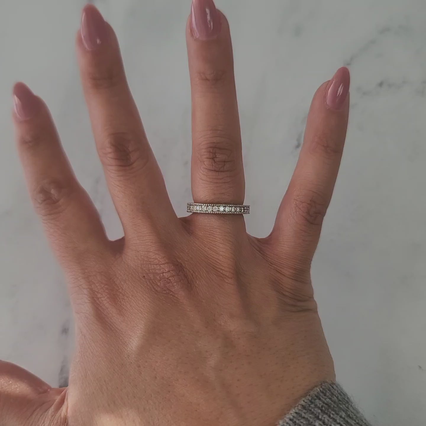 Alianza de boda con diamantes engastados en oro blanco de 14 quilates, 0,38 ct