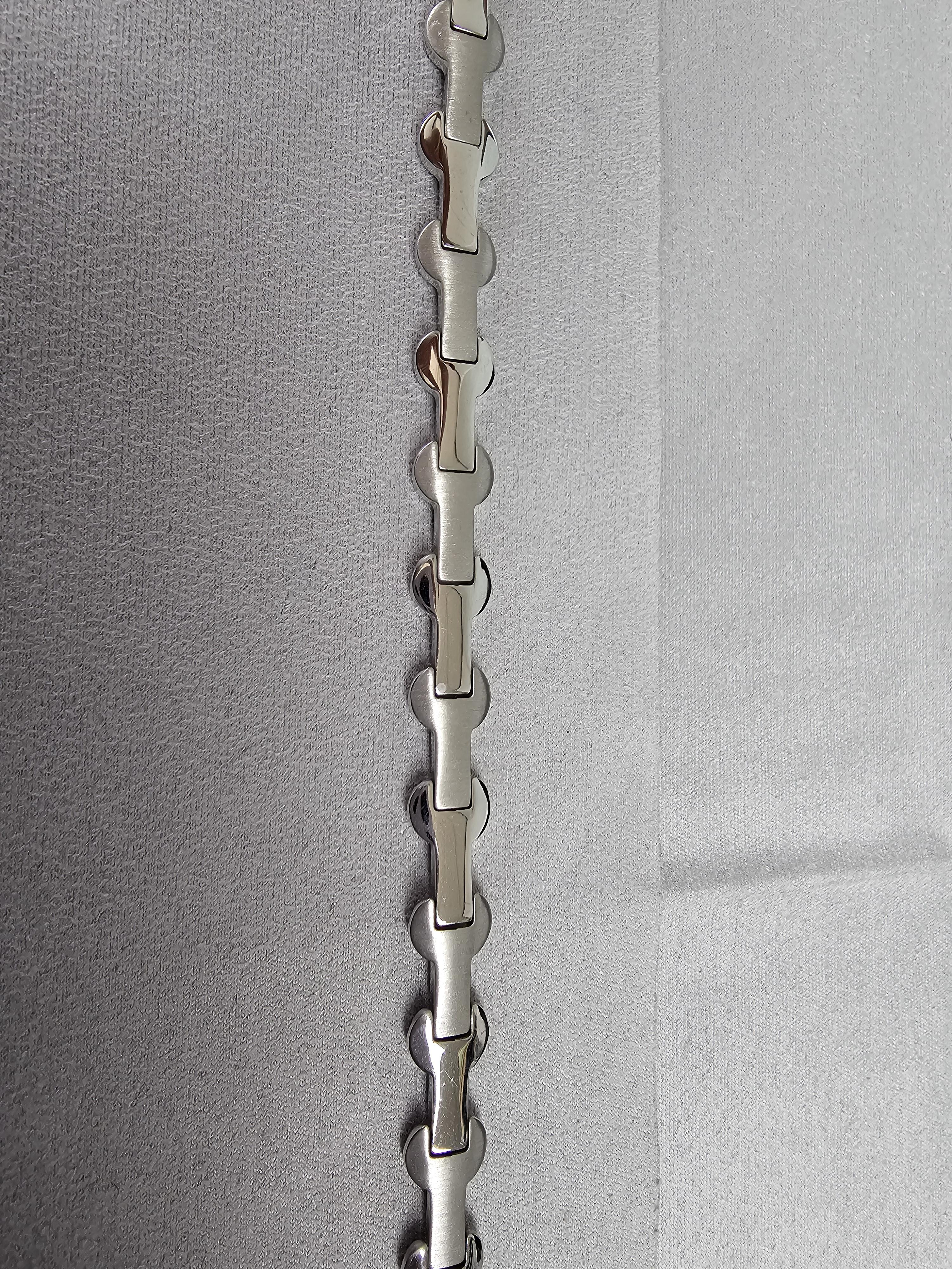 Details: Brushed Satin & Polished Bone Shaped Bracelet