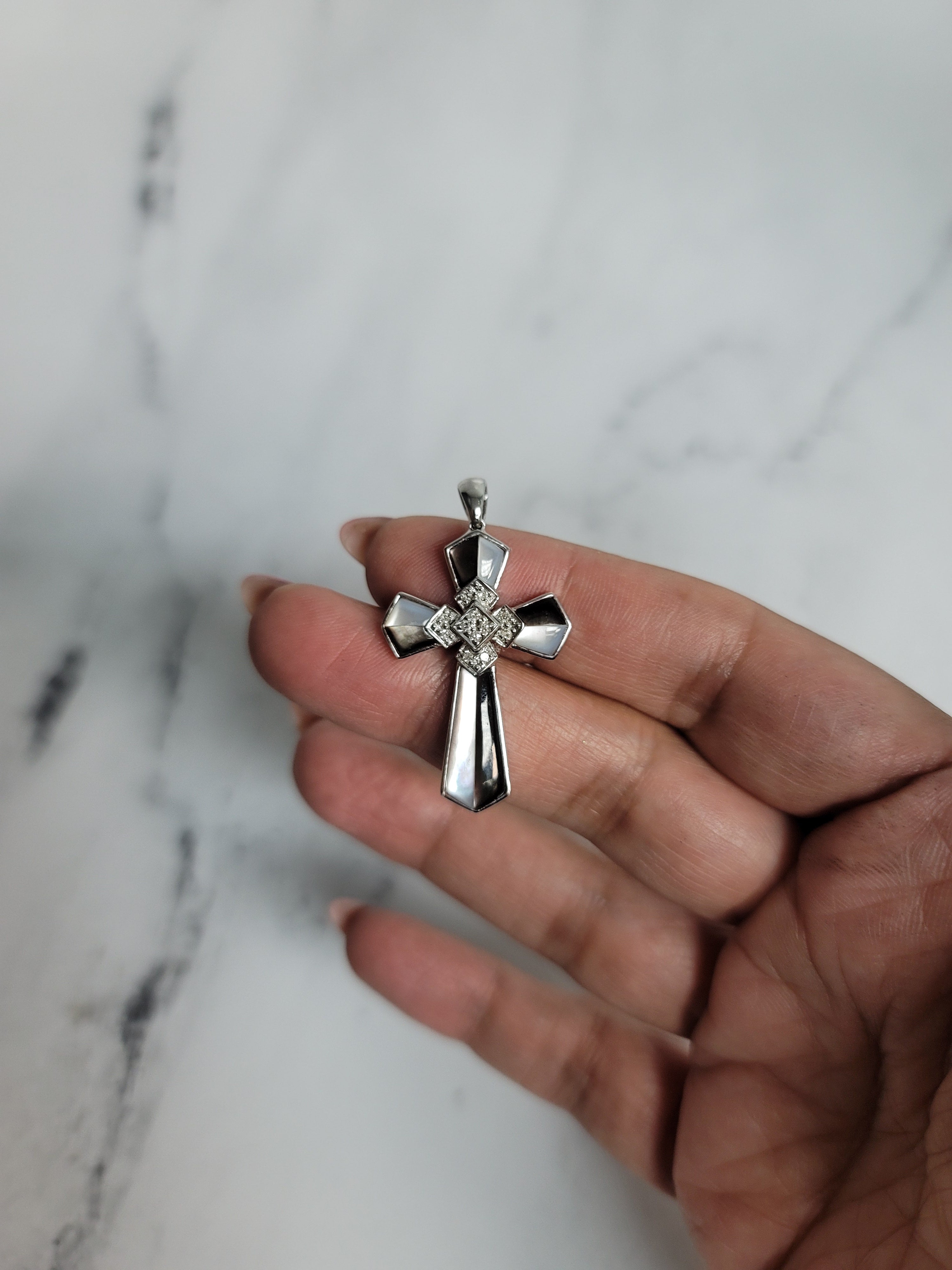 Collar de diamantes con perlas Mabe blancas y negras de estilo celta