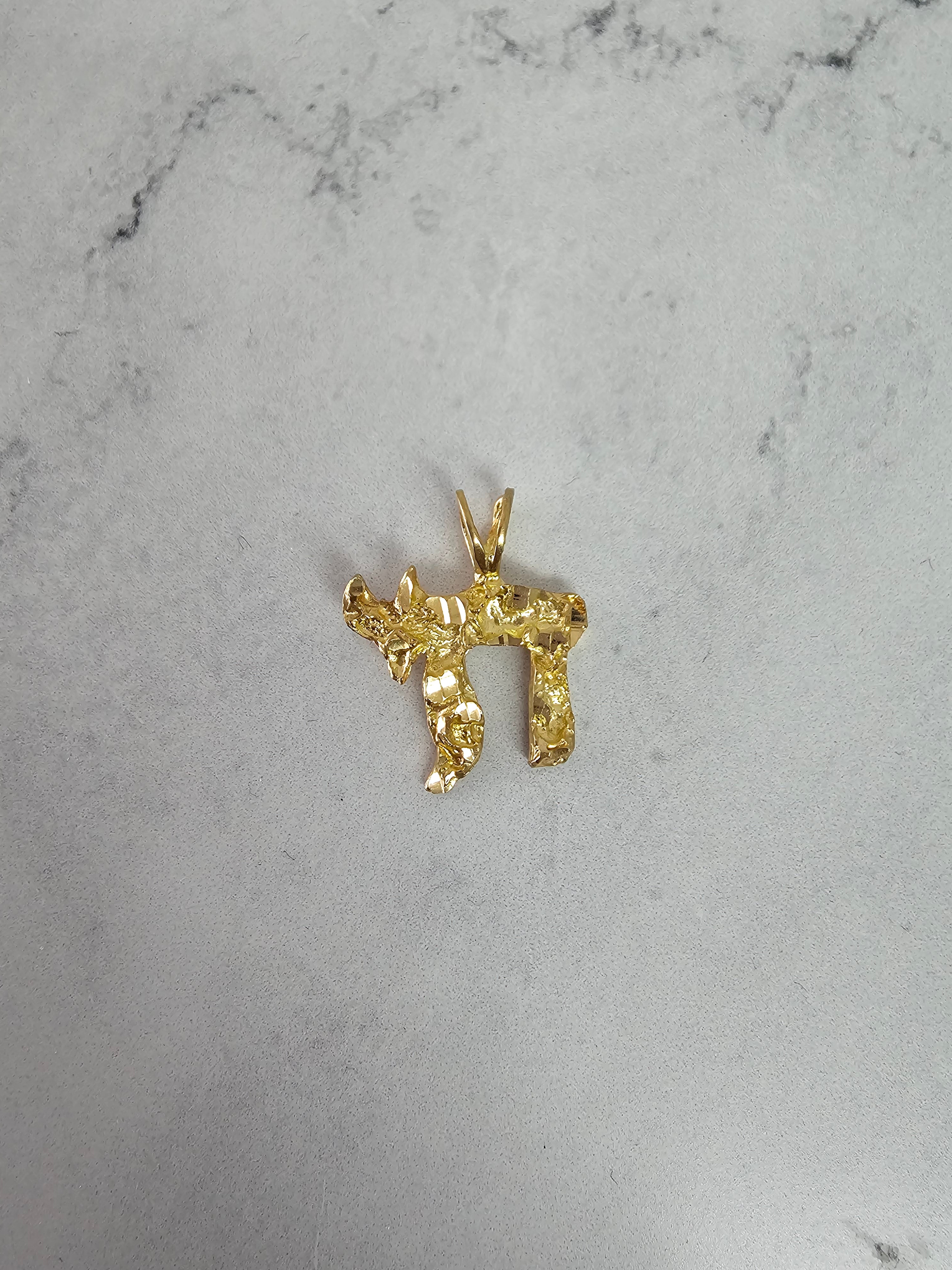 Colgante Chai con textura de pepita de oro amarillo de 10 quilates