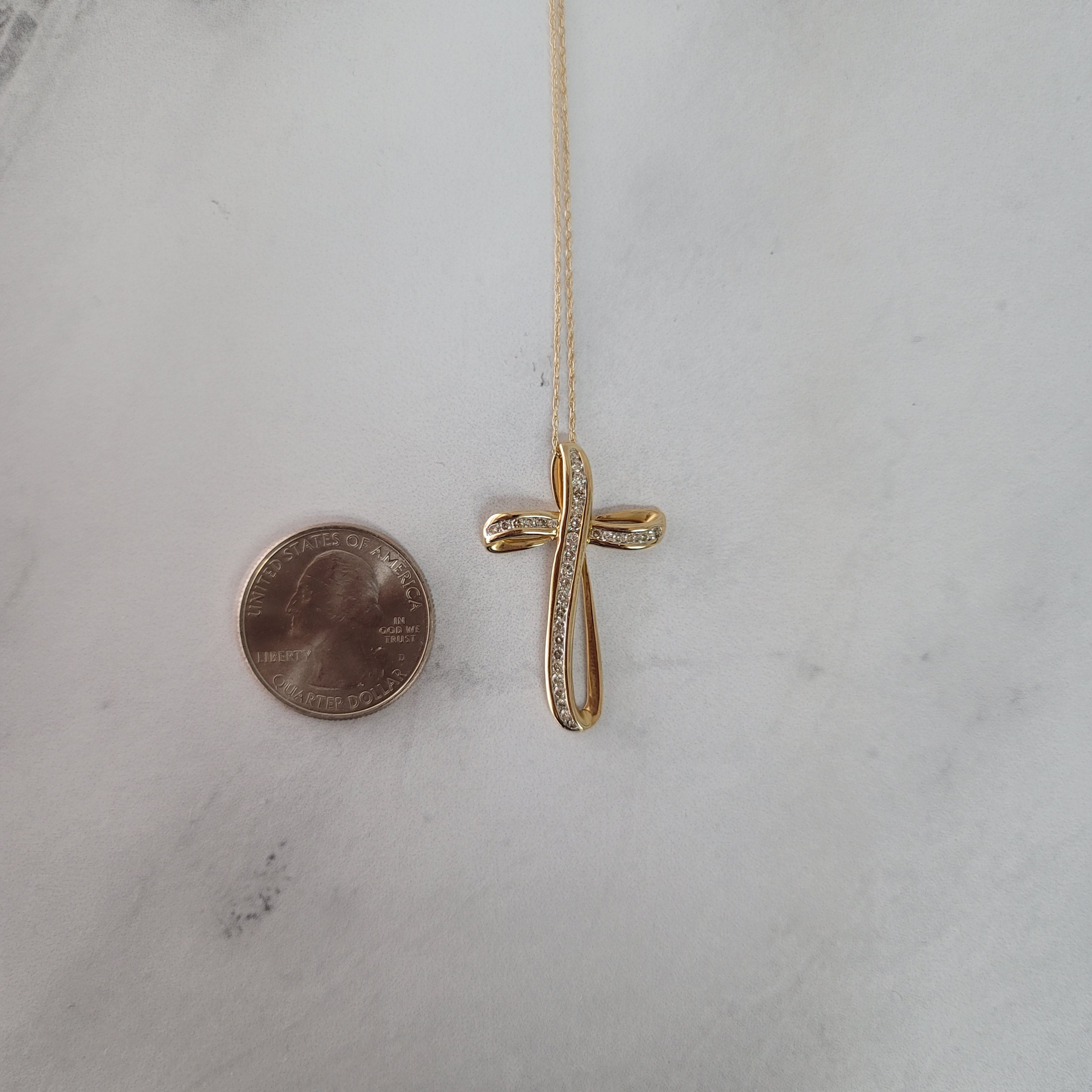 Collar con cruz de diamantes engastados en canal, 0,75 ct, oro amarillo de 14 k