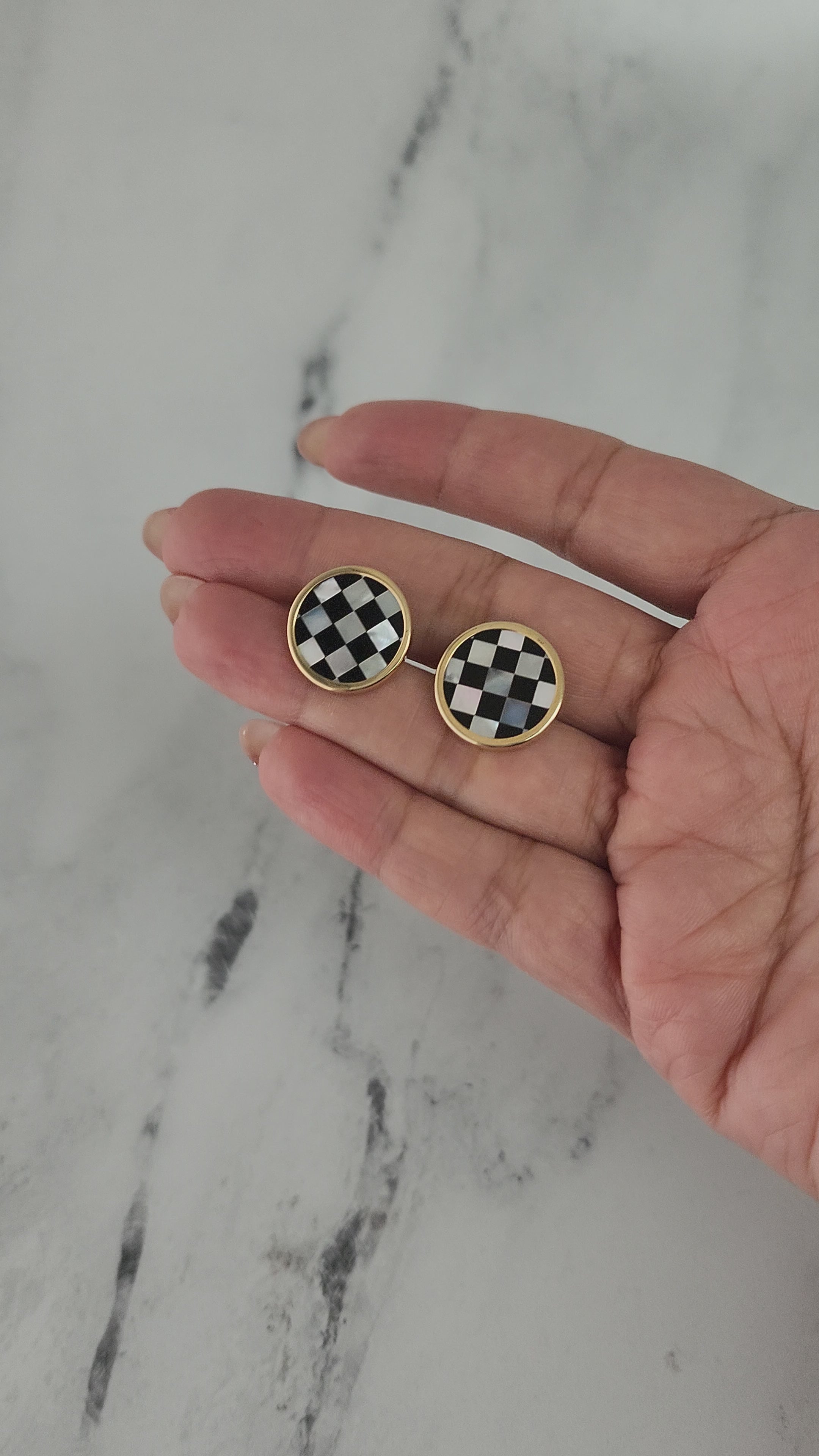 Gemelos de ónix y madreperla a cuadros con bisel de oro amarillo de 14 k