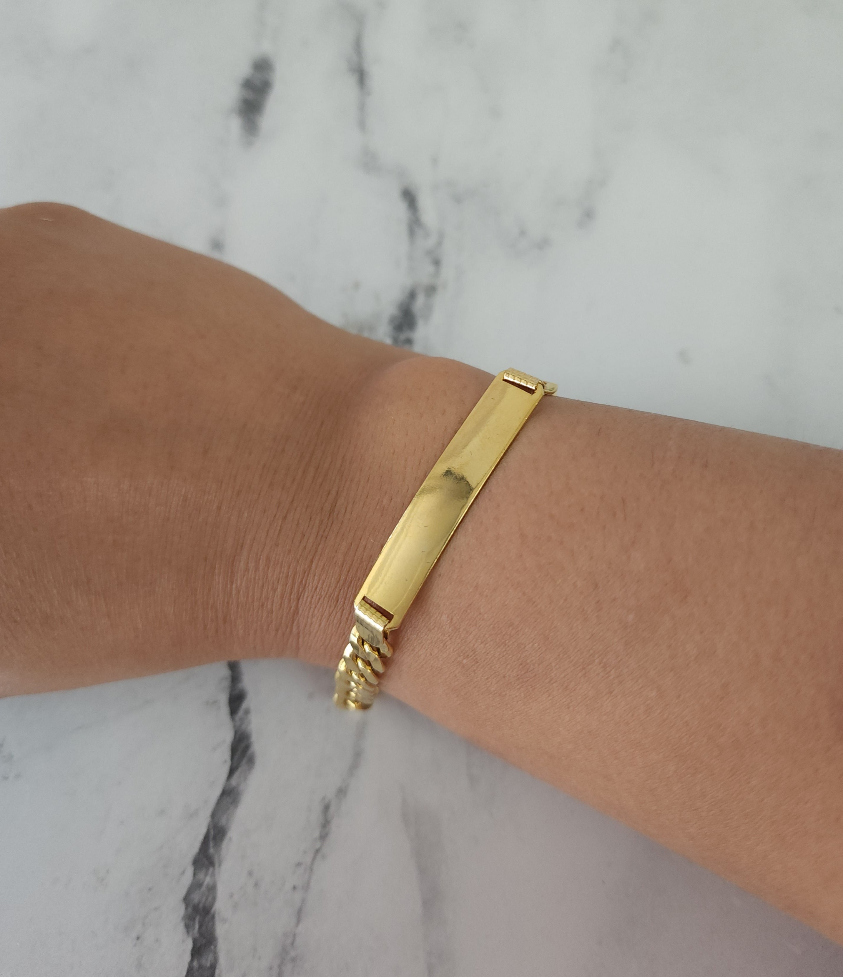 Pulsera de identificación con eslabones cubanos en oro amarillo de 14 k